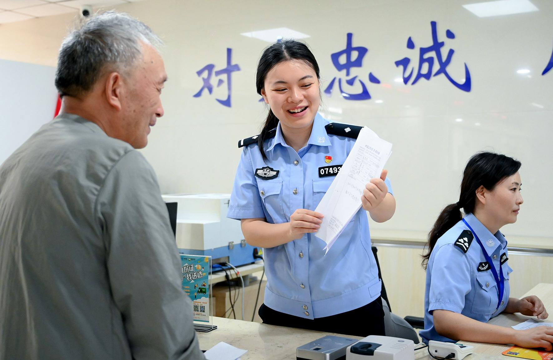 圖為6月30日,在和縣政務(wù)中心公安綜合窗口,民警正在為群眾辦理公安業(yè)務(wù)。