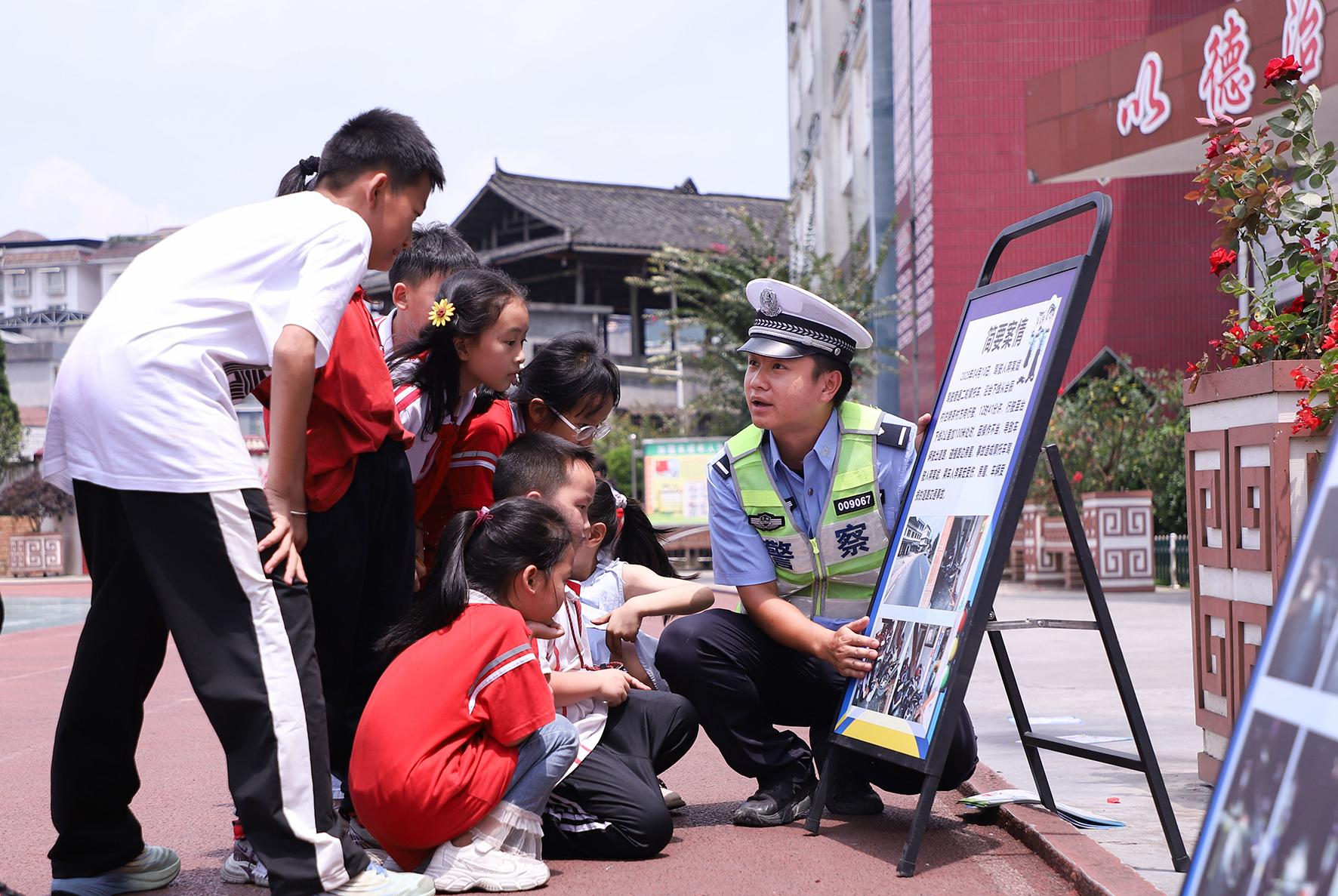 7月8日,貴州省丹寨縣交警大隊民警走進轄區(qū)城關(guān)二小,為同學(xué)們上了一堂暑假交通安全課。