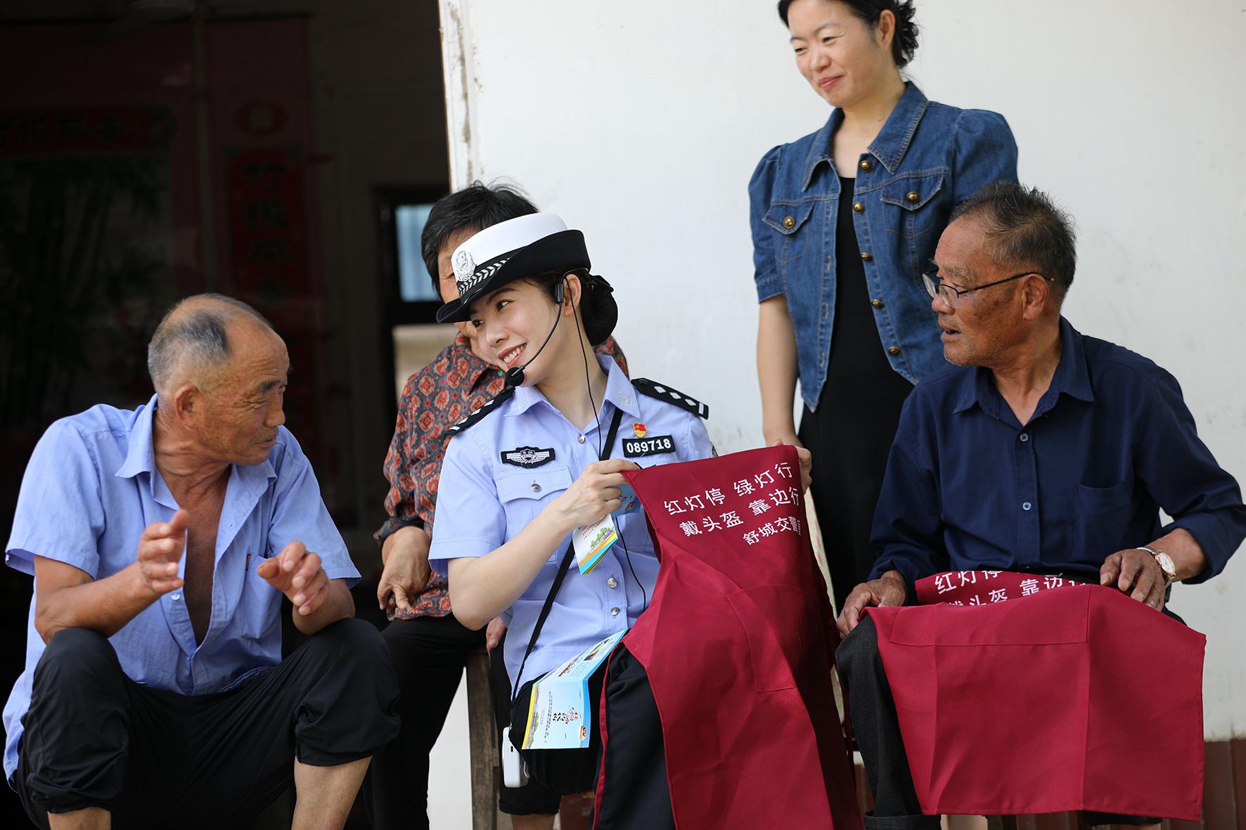 7月16日,安徽省舒城縣公安局交管大隊走進舒茶鎮(zhèn)軍埠村村民家開展道路交通安全知識宣傳。