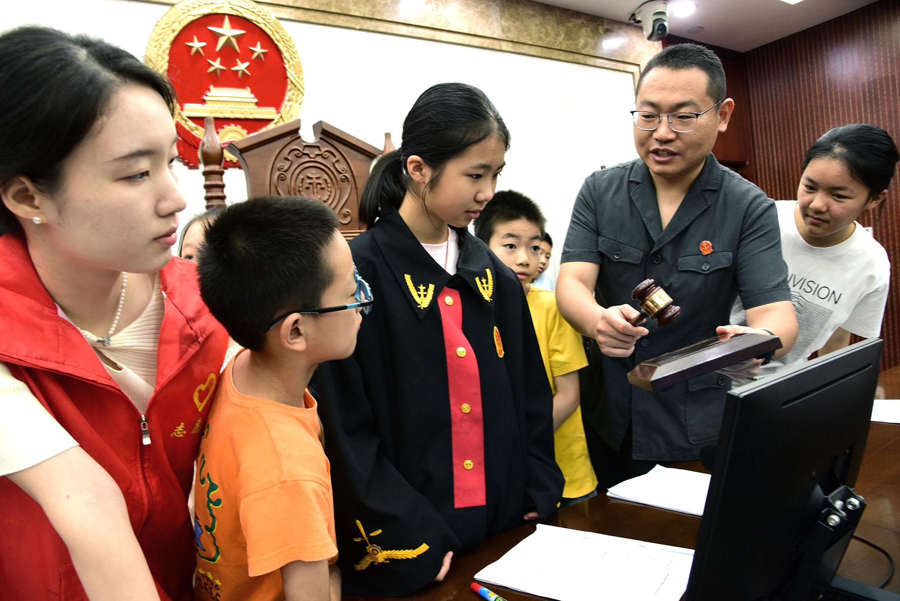 8月7日,江蘇省鎮(zhèn)江市七里甸司法所聯(lián)合江蘇大學(xué)法律援助中心志愿者組織中小學(xué)生走進潤州區(qū)人民法院金山湖法庭,開展“今天我是小法官——模擬法庭學(xué)法”活動。