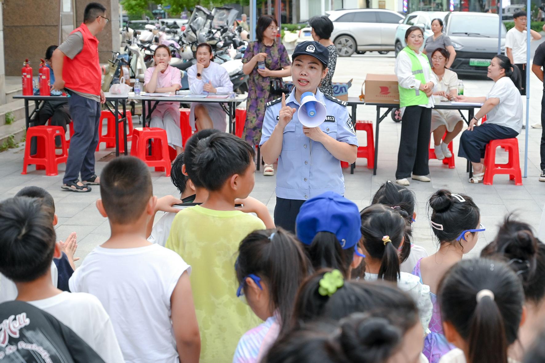 8月7日,在安徽省馬鞍山市和縣禹錫社區(qū),和縣公安局民警向未成年人宣講防溺水與防拐騙知識。
