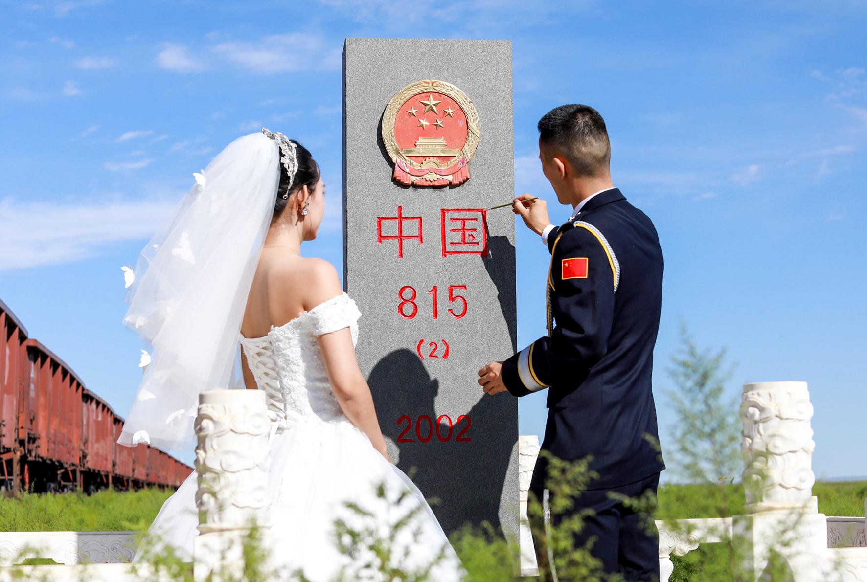 8月16日,內(nèi)蒙古出入境邊防檢查總站二連出入境邊防檢查站隆重舉辦第六屆“愛在北疆 情定國門”集體婚禮,9對新人在象征著國家主權(quán)與尊嚴(yán)的巍峨國門前,許下了“執(zhí)子之手 與子偕老”的誓言。