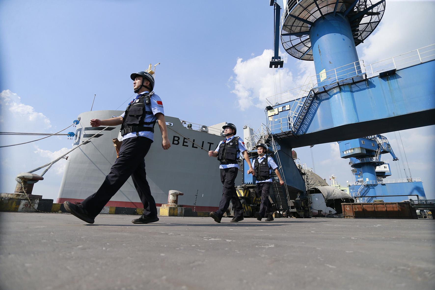 8月19日,南京港邊檢站主動靠前服務,為裝載有2.3萬噸鉀肥的挪威籍“貝利塔”輪量身定制“一船一策”服務舉措,開通“重要物資快捷通道”,積極做好船員及船舶預檢工作,全力保障口岸通關安全暢通。