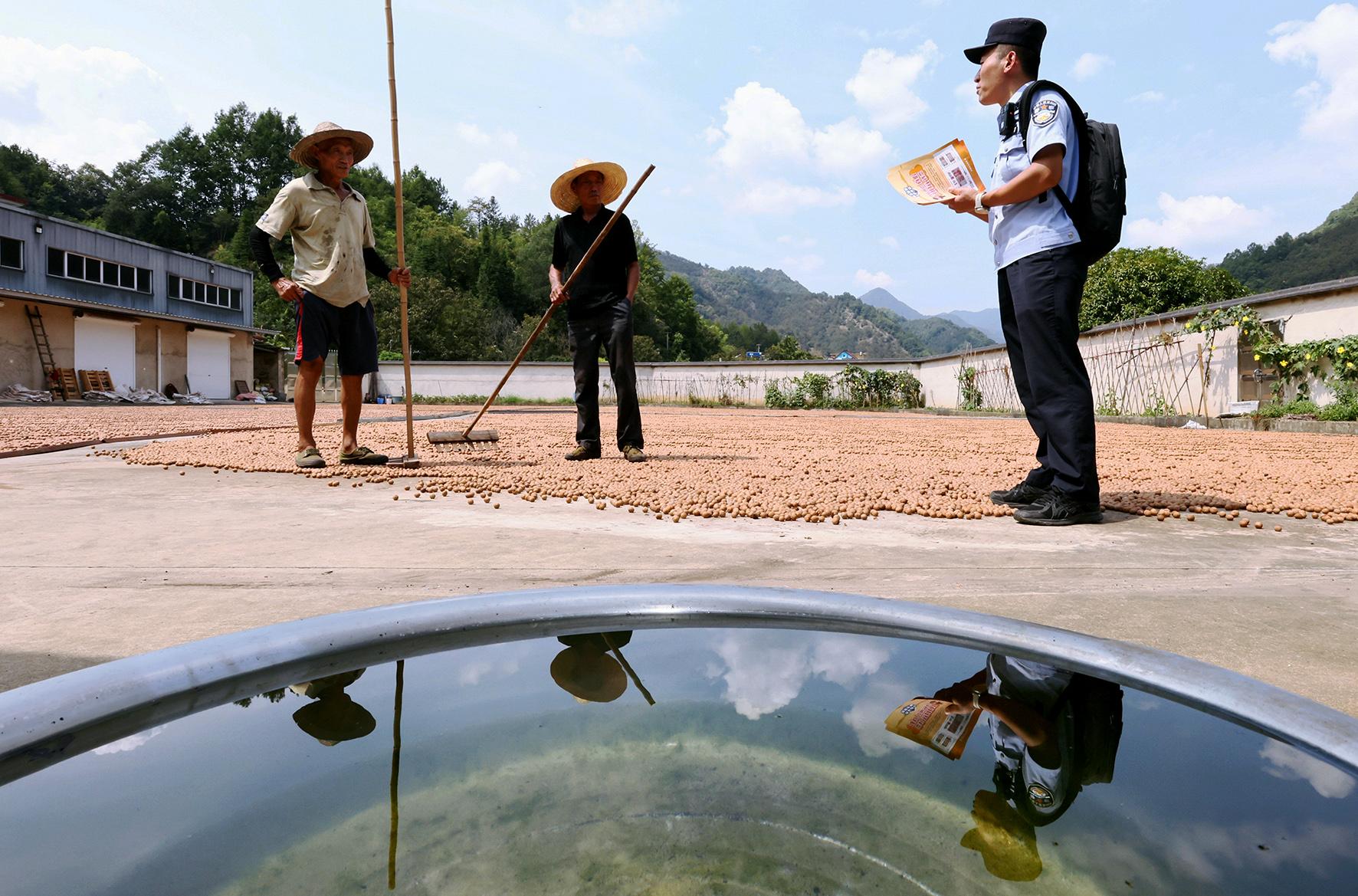 9月4日,安徽省寧國市公安局寧墩派出所聯(lián)合交管大隊(duì)中溪中隊(duì)開展山核桃采摘期間的安全防范宣傳活動。