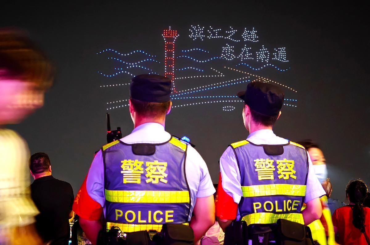 10月1日,長江航運公安局南通分局民警在南通長江體育公園執(zhí)勤。