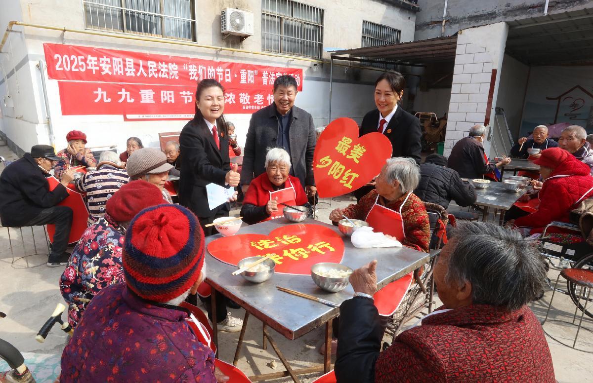 10月29日,河南省安陽(yáng)縣人民法院組織干警深入轄區(qū)呂村鎮(zhèn)西呂村開展“我們的節(jié)日·重陽(yáng)”普法宣傳。