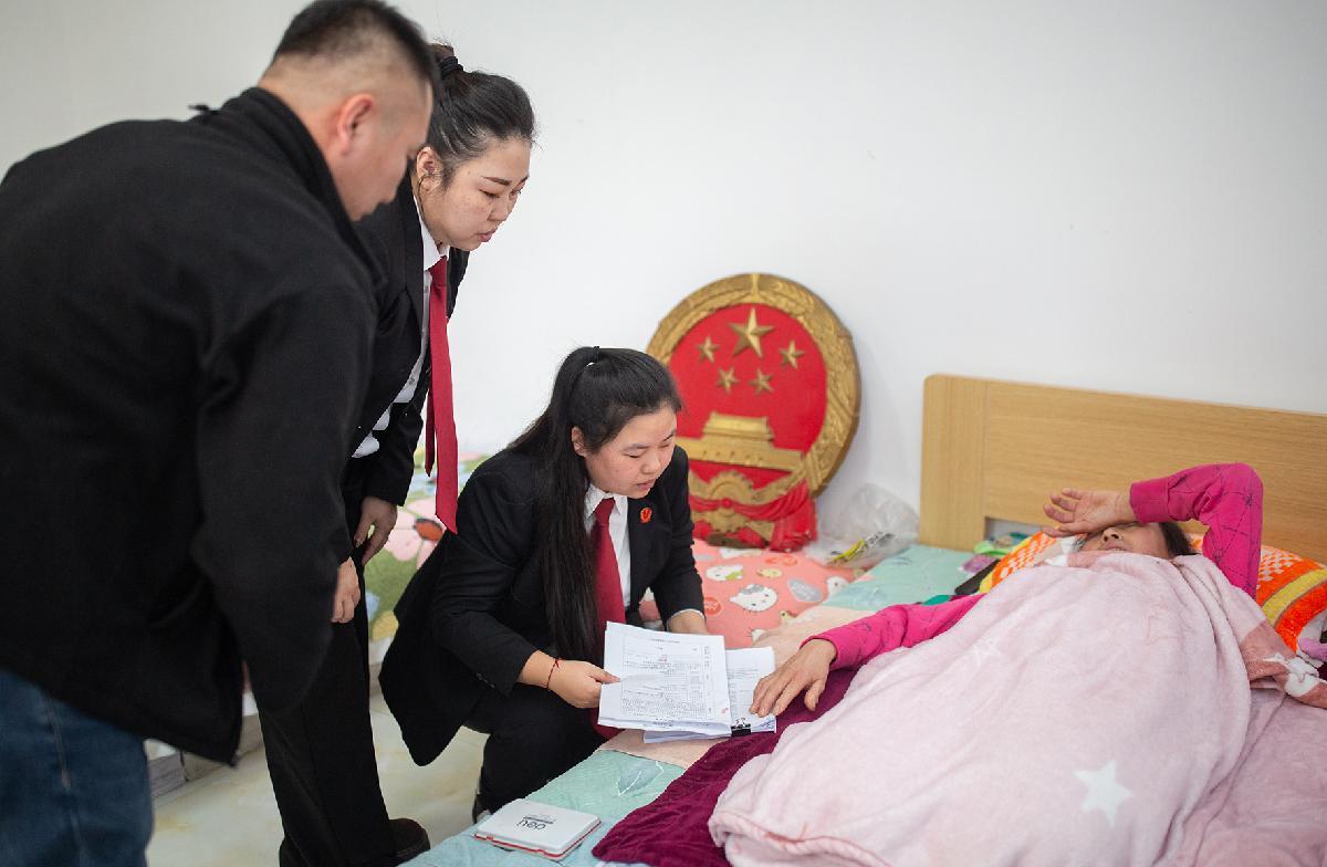 11月4日,吉林省四平市鐵西區(qū)人民法院英雄法庭工作人員上門為一名肢體殘疾的當(dāng)事人辦理立案手續(xù)。