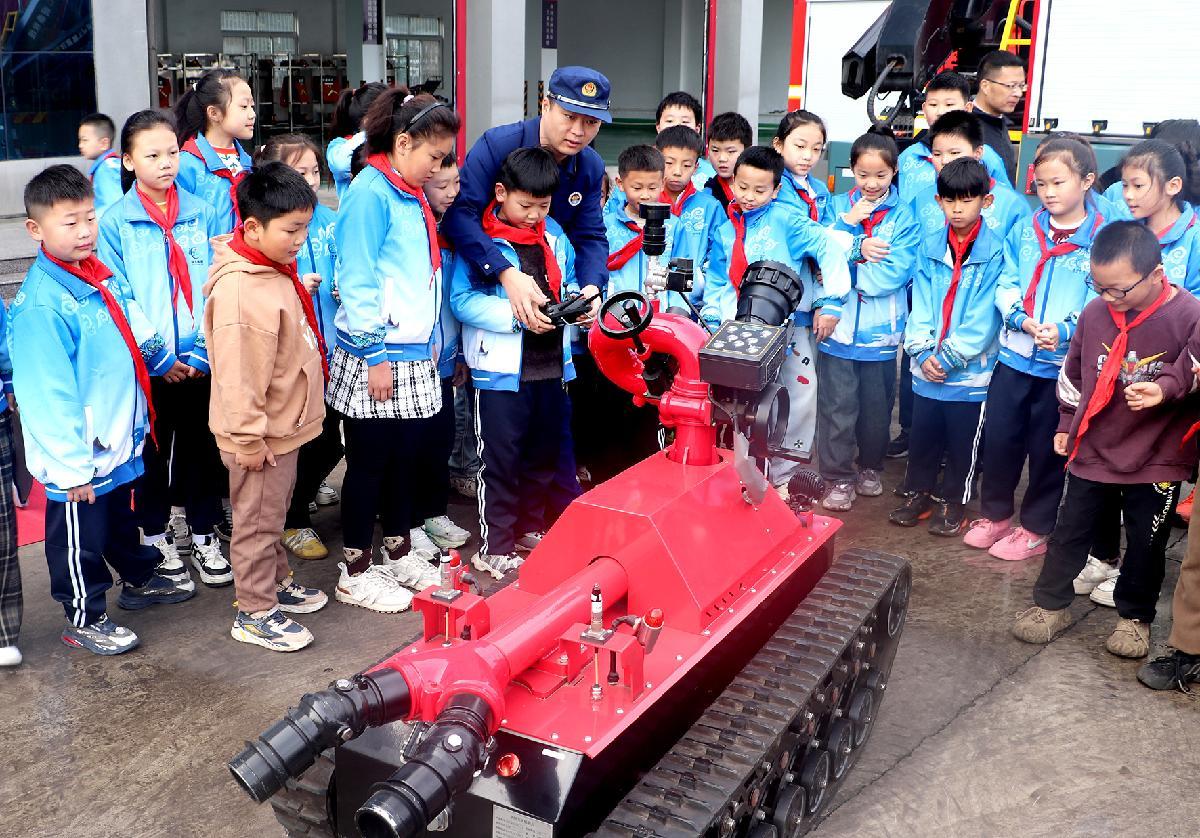 11月10日,山東省棗莊市薛城區(qū)鄒塢鎮(zhèn)洪村小學40余名師生走進鄒塢鎮(zhèn)消防救援站,零距離體驗消防器材,學習消防知識。