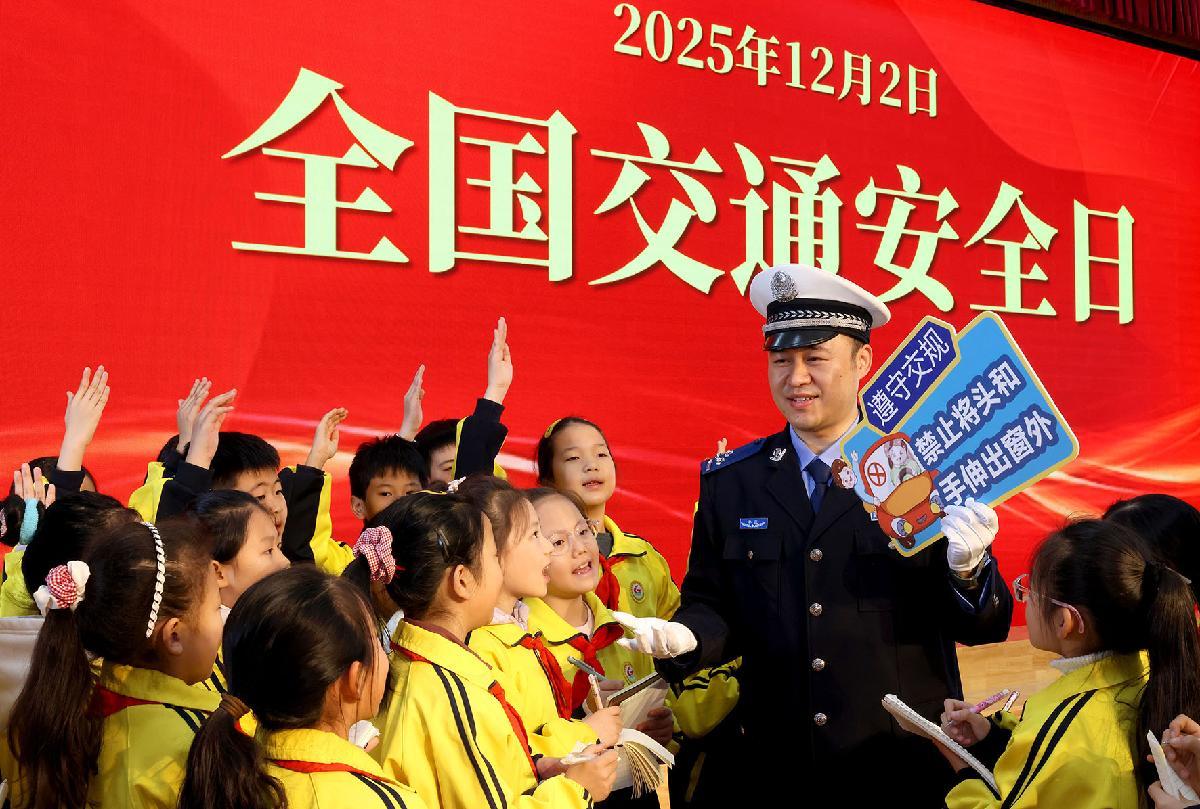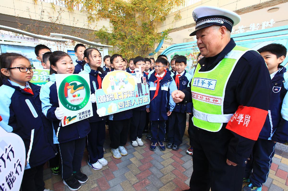 12月1日,江蘇省徐州市蘇堤路小學開展“文明交通伴‘童’行”主題活動,邀請被同學們親切地稱為“交警爺爺”的退休警察陳孟軍來校講解交通安全知識。