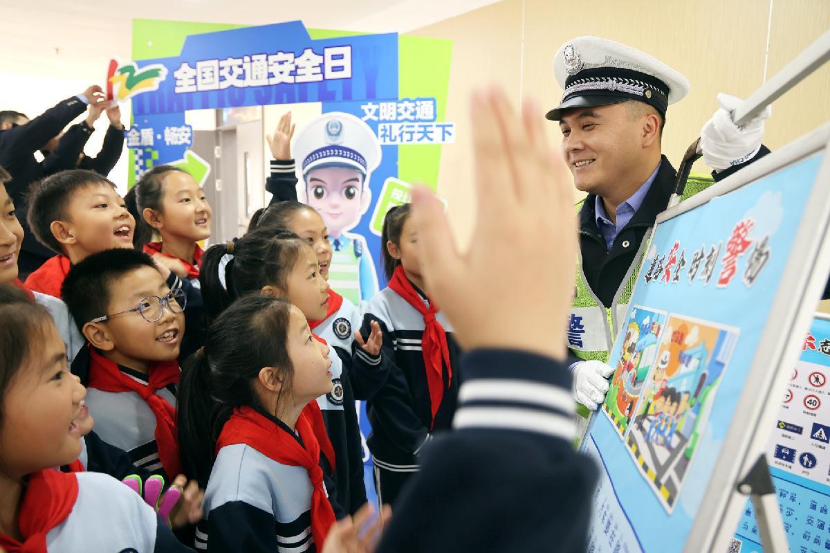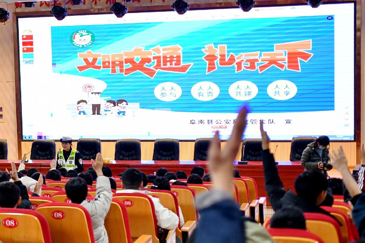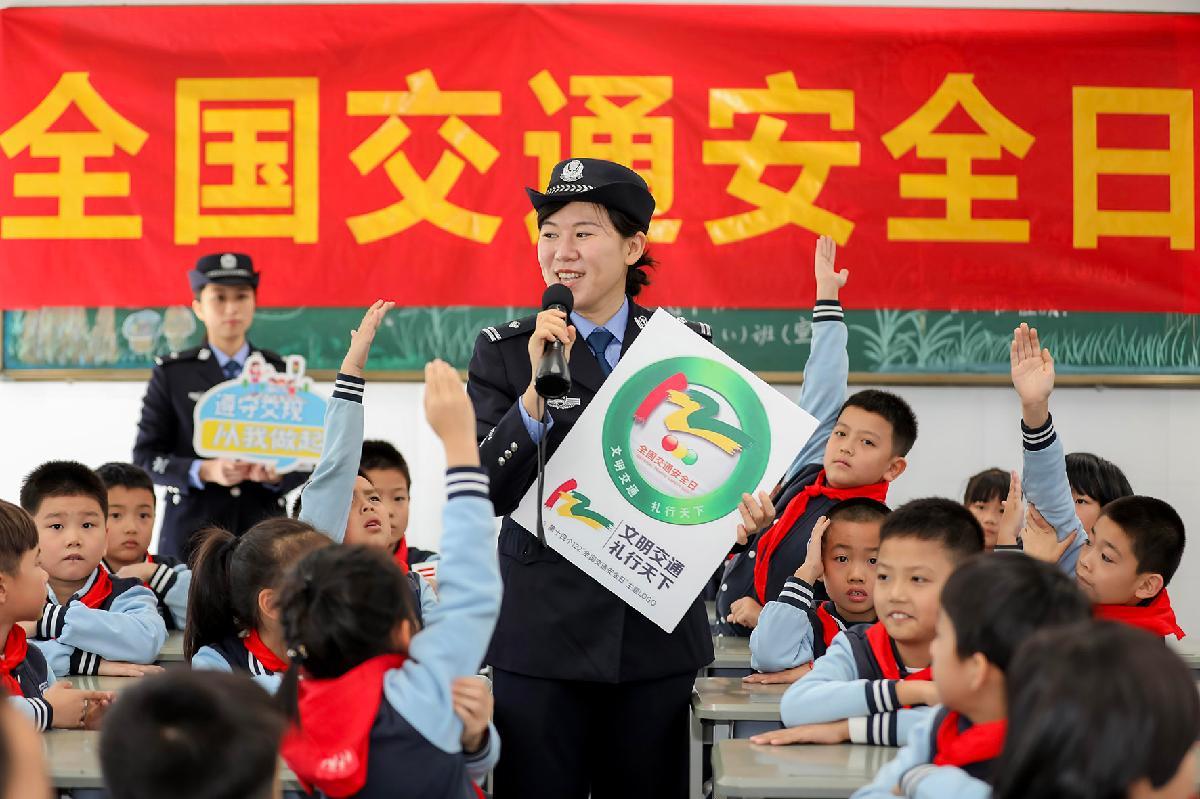 11月28日,在第十四個“全國交通安全日”來臨之際,安徽省阜南縣公安局交管大隊組織民警輔警走進轄區(qū)中心學校開展“文明交通 禮行天下”主題宣傳。