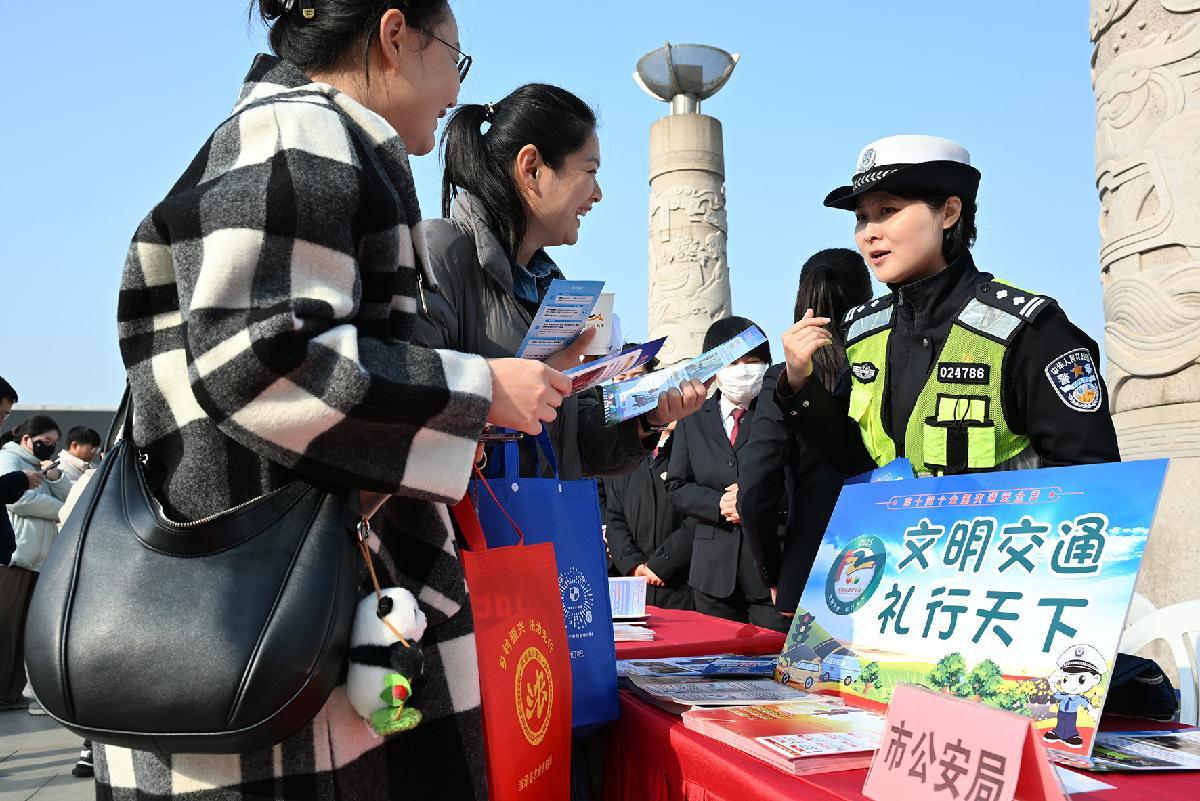 12月1日,江西省九江市公安局交管支隊在南山公園中心廣場開展“文明交通 禮行天下”主題宣傳。