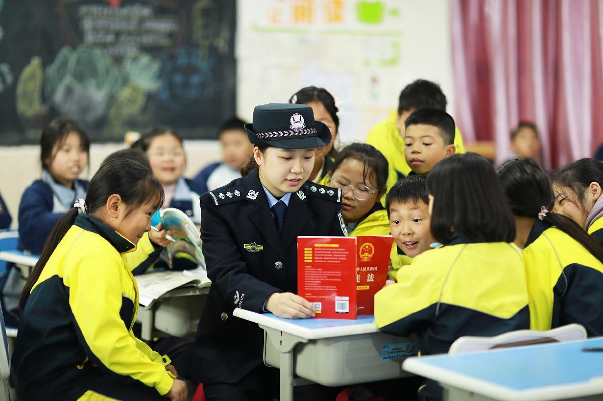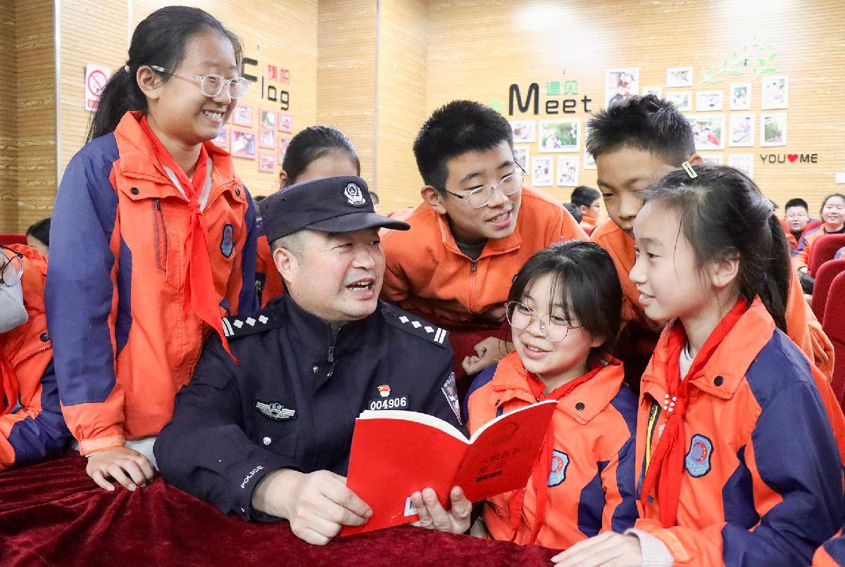 12月2日,江蘇泰州出入境邊防檢查站民警走進(jìn)泰州市鳳凰小學(xué),開展“知憲明法 與憲‘童’行”主題宣傳。