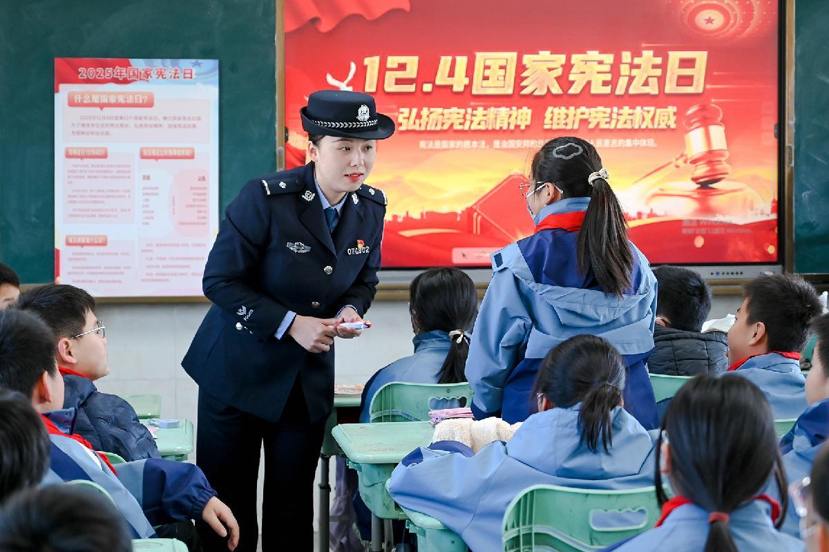 12月2日,安徽省合肥市公安局瑤海分局勝利路派出所民警走進(jìn)轄區(qū)學(xué)校,開展“憲法宣傳進(jìn)校園”主題宣傳。