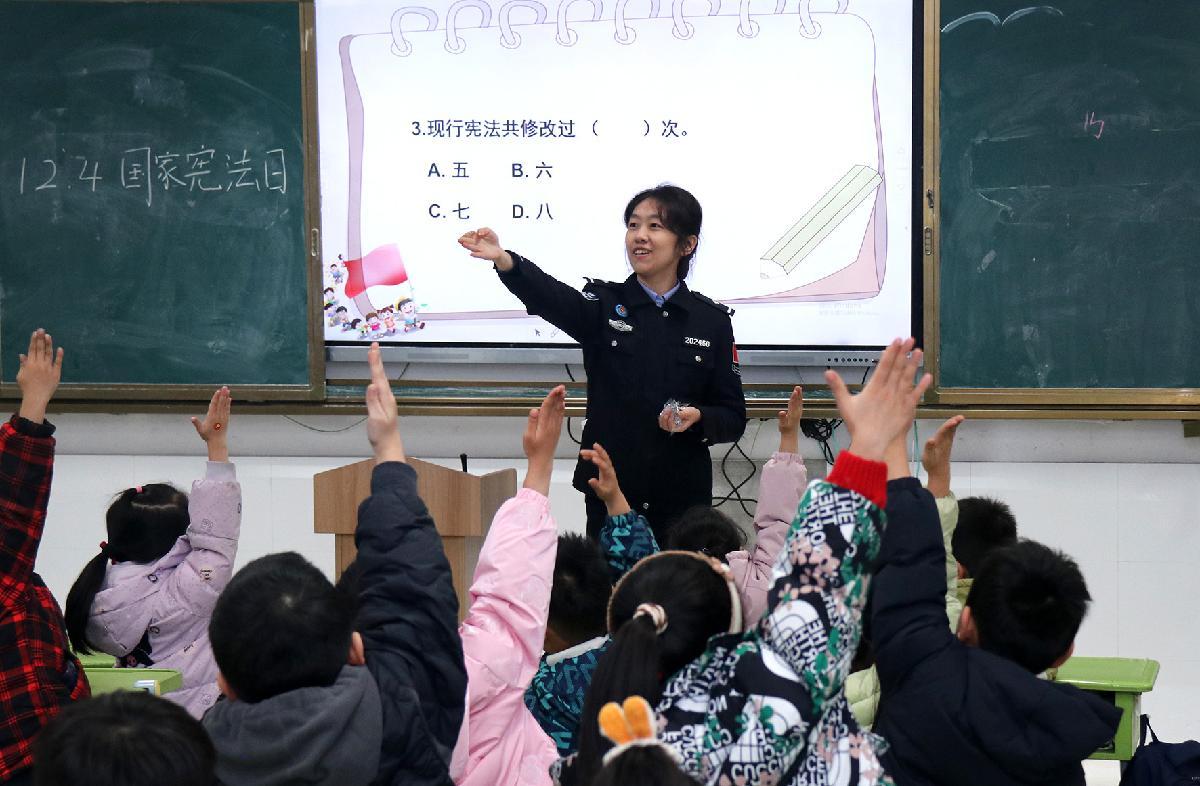 12月3日,安徽省馬鞍山市和縣公安局民警走進(jìn)歷陽鎮(zhèn)第三小學(xué),開展憲法知識宣傳。