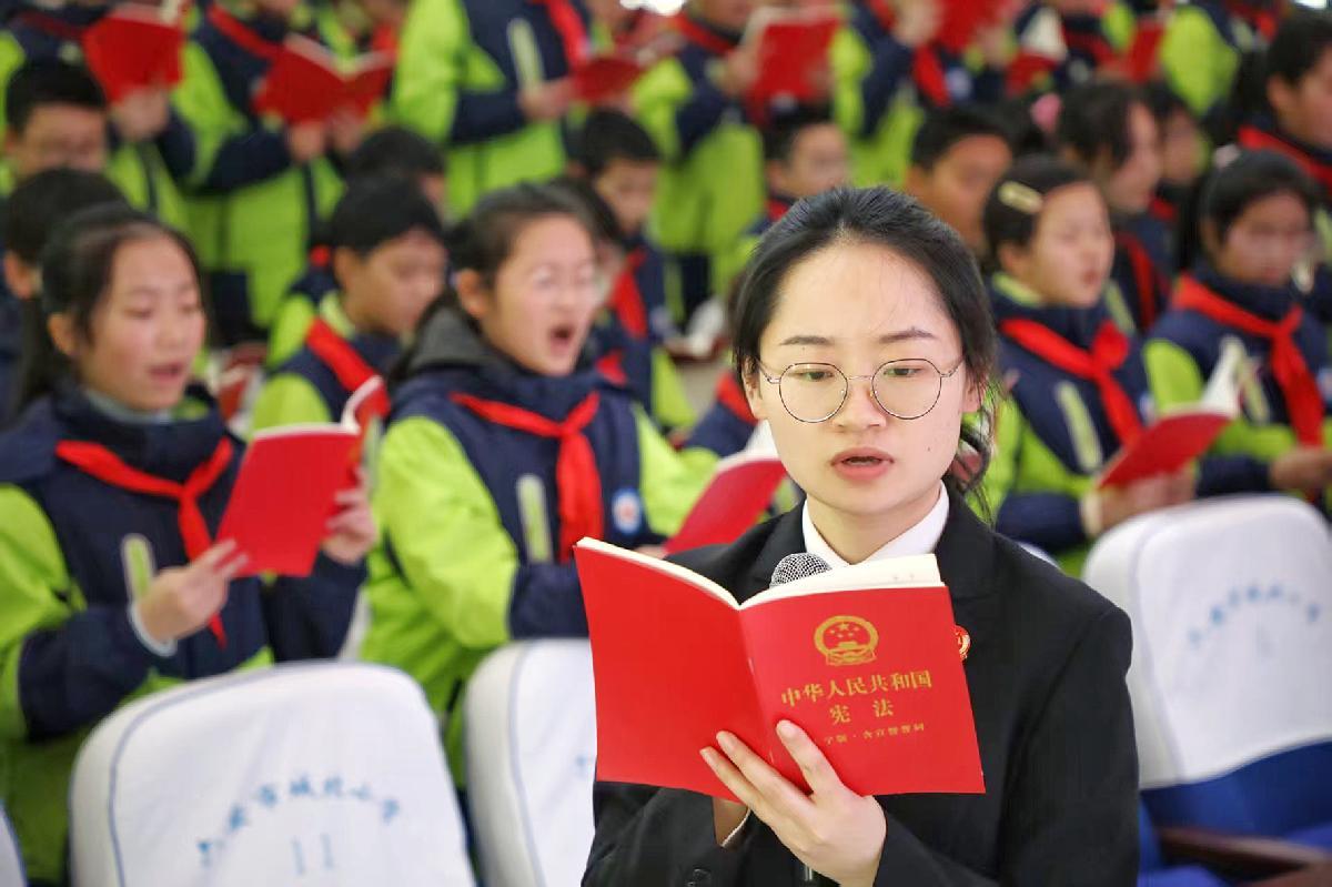 12月2日,山東省莒南縣人民法院干警走進(jìn)板泉鎮(zhèn)中心小學(xué),為同學(xué)們帶來一場別開生面的憲法宣講。