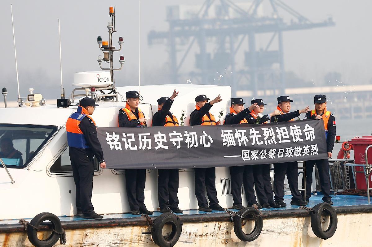 12月13日是第十二個(gè)南京大屠殺死難者國(guó)家公祭日。12月11日,南京港出入境邊防檢查站聯(lián)合長(zhǎng)江航運(yùn)公安局南京分局棲霞派出所在長(zhǎng)江南京段新生圩水域舉行“銘記歷史守初心 緬懷先烈擔(dān)使命”主題祭奠活動(dòng)。