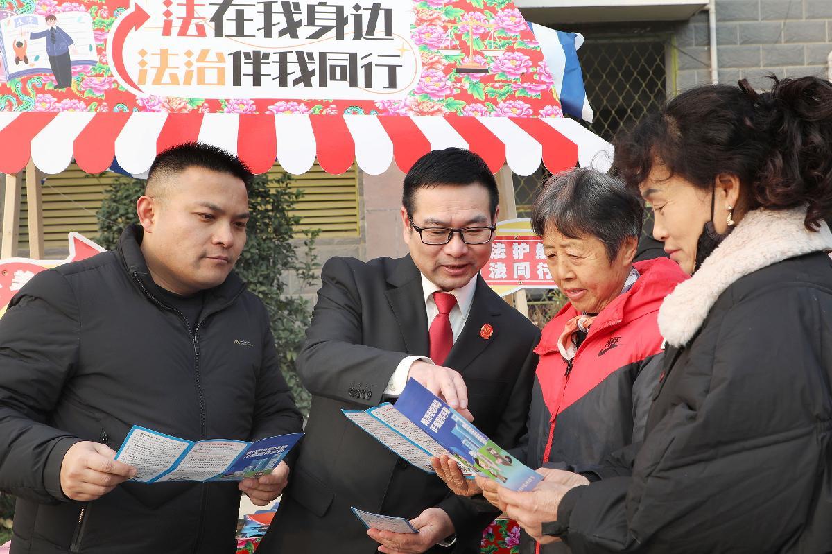 12月17日,安徽省六安市金安區(qū)東市街道七里站社區(qū),六安市中級人民法院法官向居民宣傳反電詐、未成年人保護法等法律知識。
