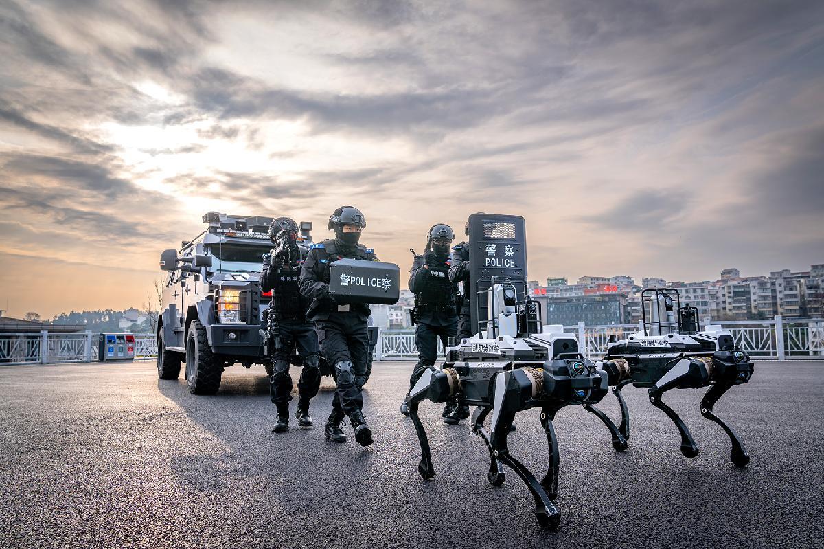 1月5日,四川省綿陽市公安局特巡警支隊特警大隊以智能裝備賦能實戰(zhàn)練兵,開展人機協(xié)同實戰(zhàn)化演練。