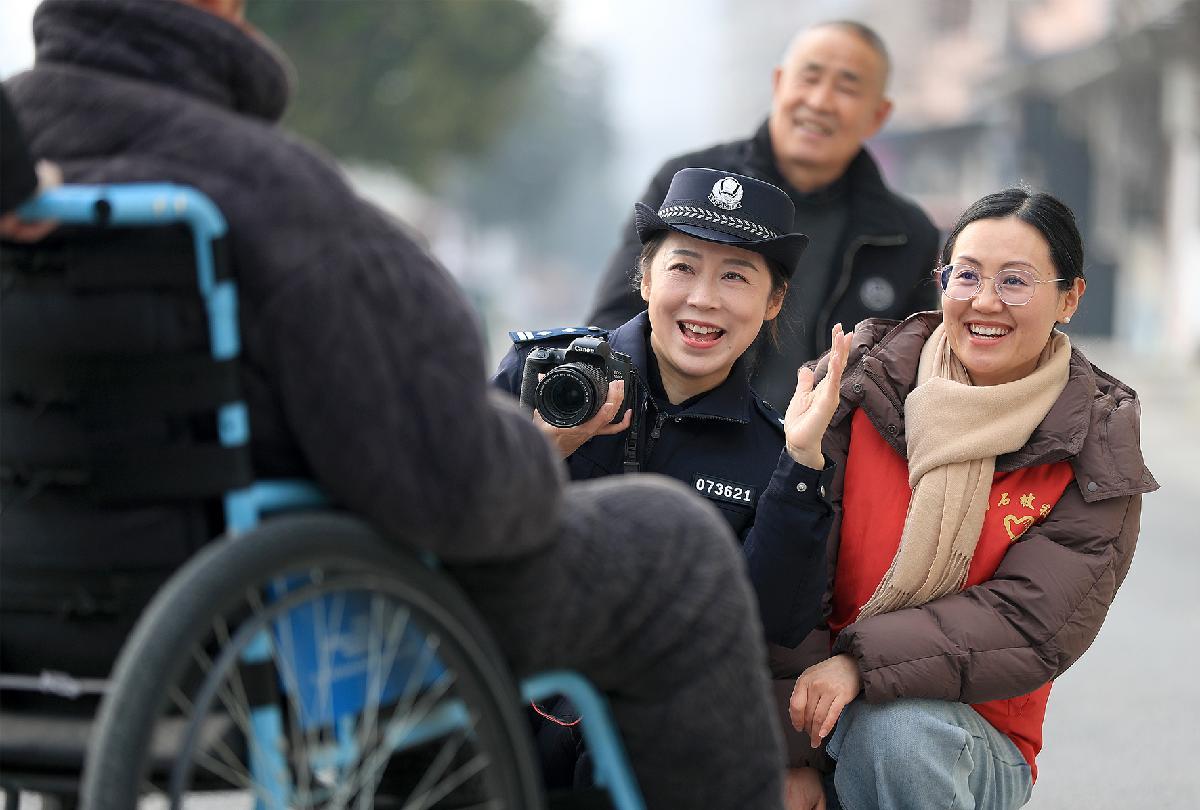 圖為1月27日,掇刀石派出所戶籍民警在白石坡社區(qū),上門為行動不便的居民采集身份證換證信息。