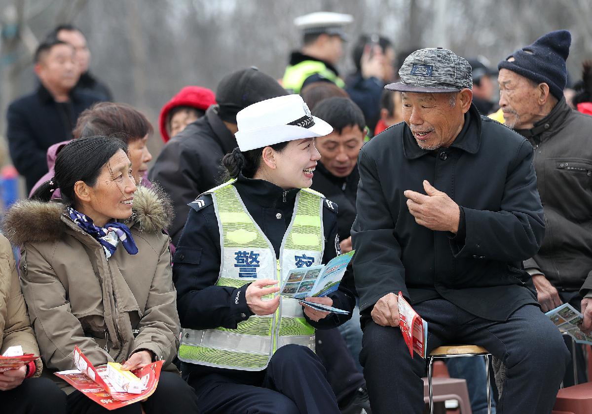 春節(jié)前夕,湖北省荊門(mén)市公安局交通管理局結(jié)合農(nóng)村“村晚”“趕集日”等群眾聚集活動(dòng),組織民輔警開(kāi)展交通安全普法宣傳,筑牢鄉(xiāng)村道路交通安全防線。
