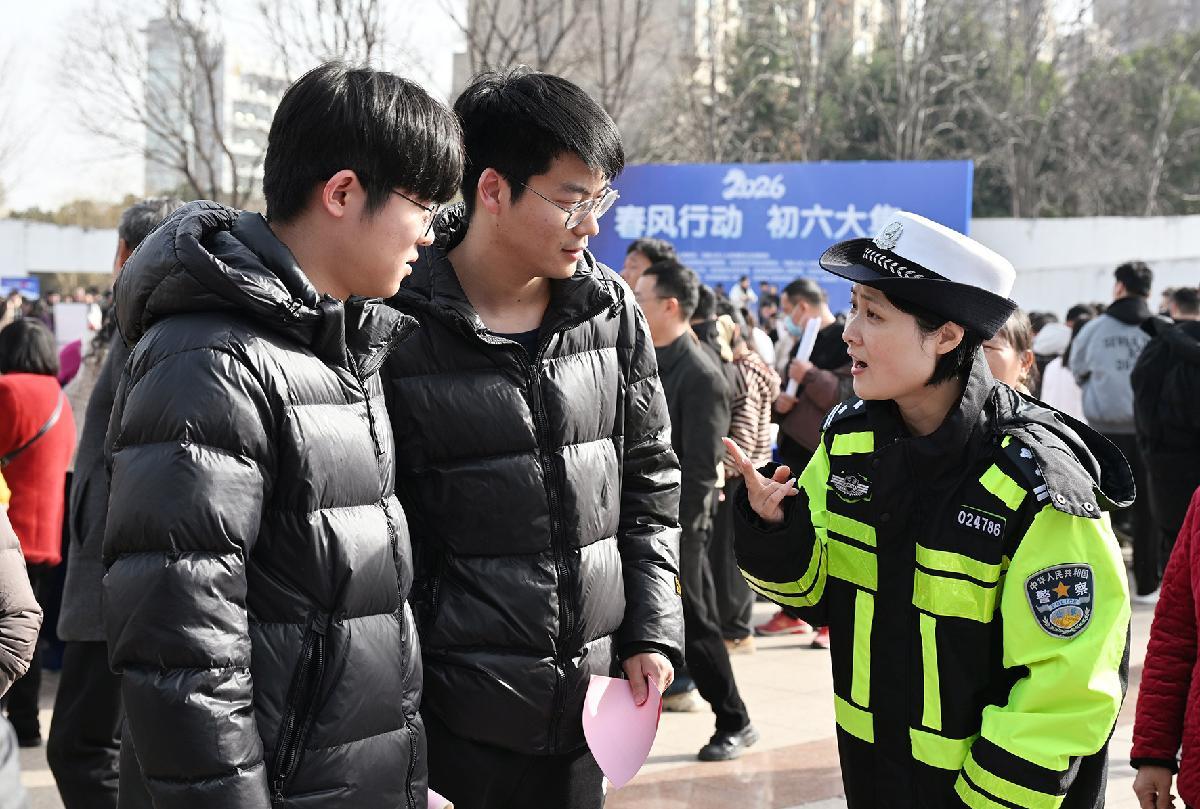 2月23日,安徽省寧國市公安局民輔警在2026年“春風行動”暨就業(yè)援助季系列活動現(xiàn)場巡邏執(zhí)勤。