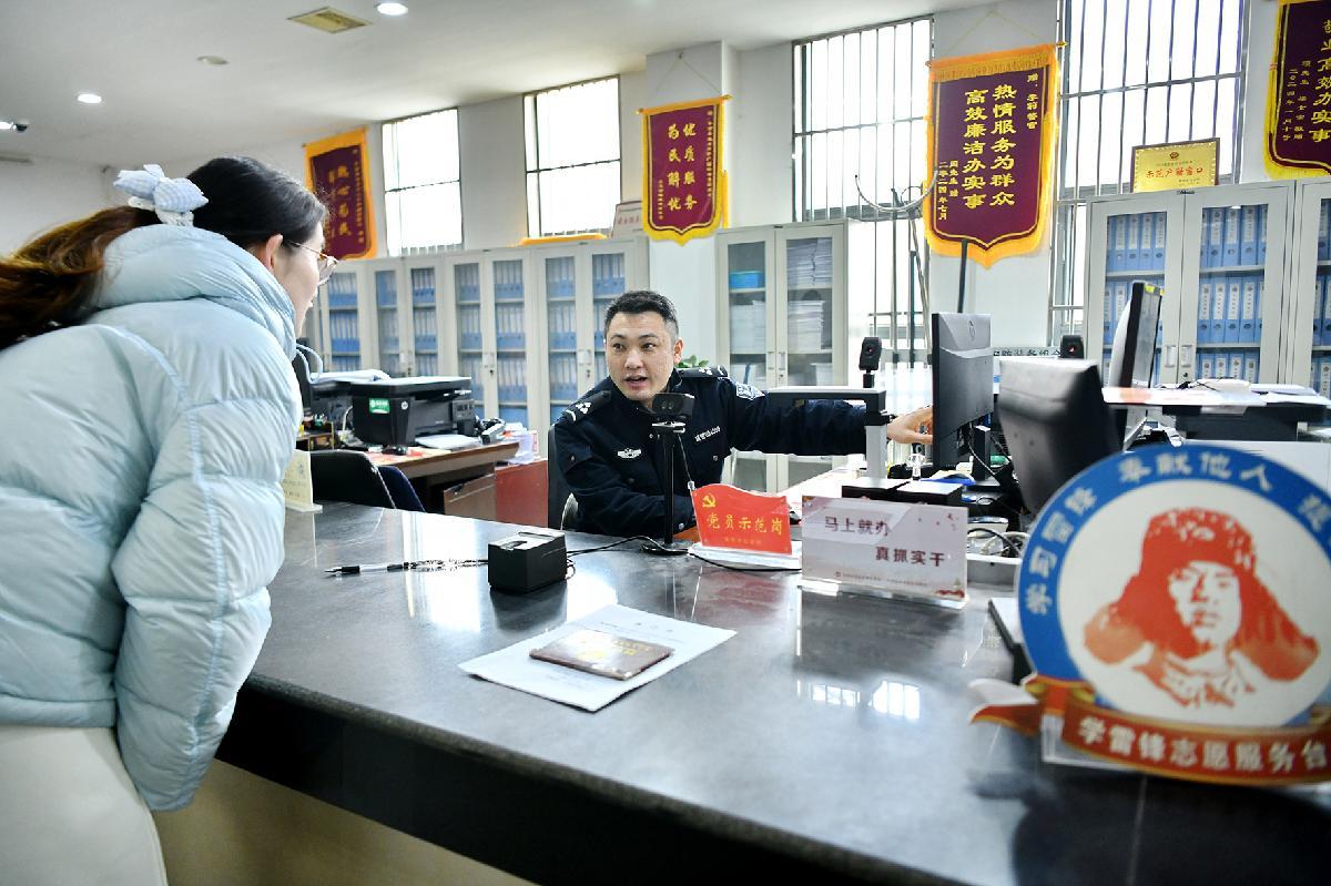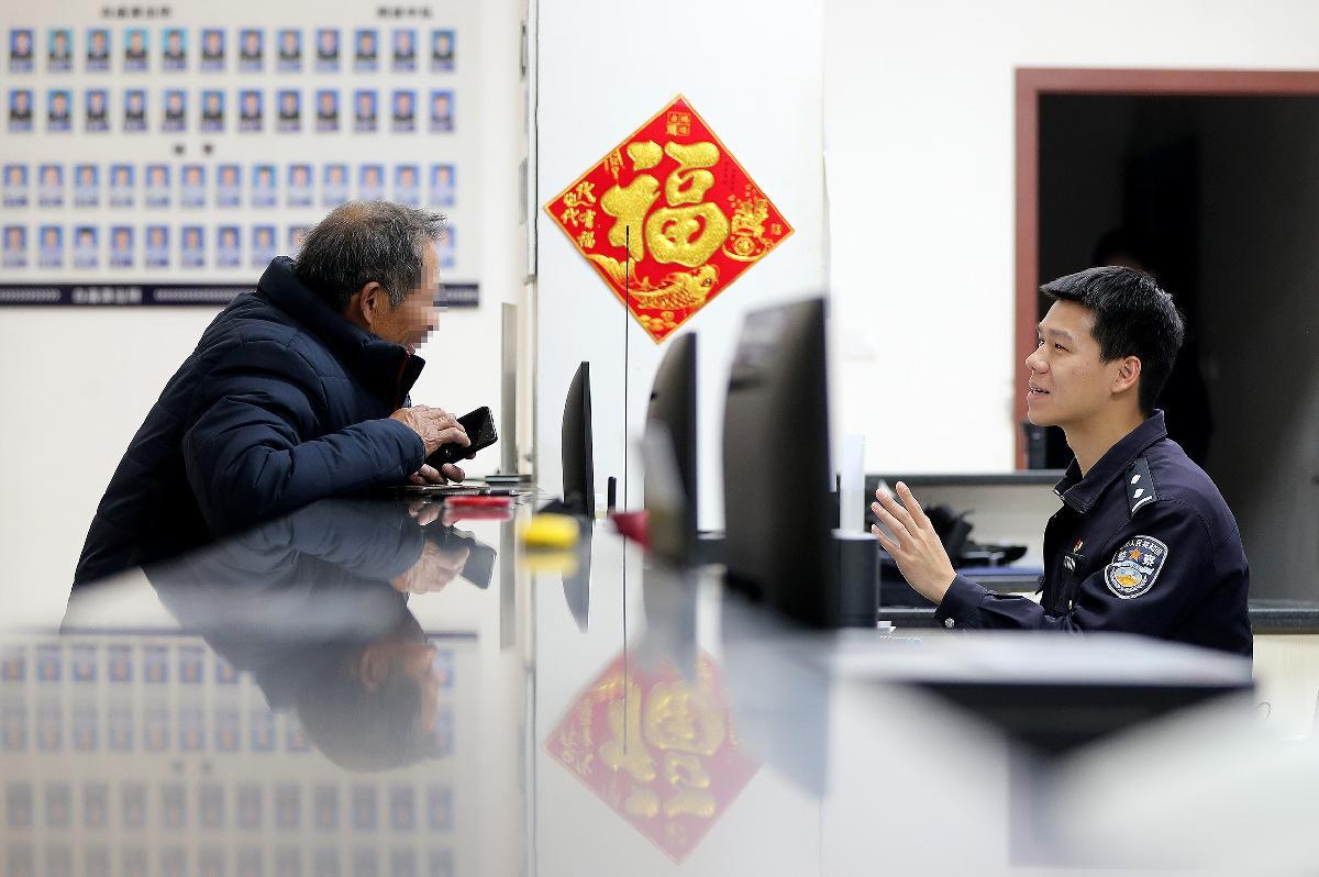 2月17日,安徽省阜南縣行政服務中心公安窗口工作人員在為群眾辦理身份證業(yè)務。