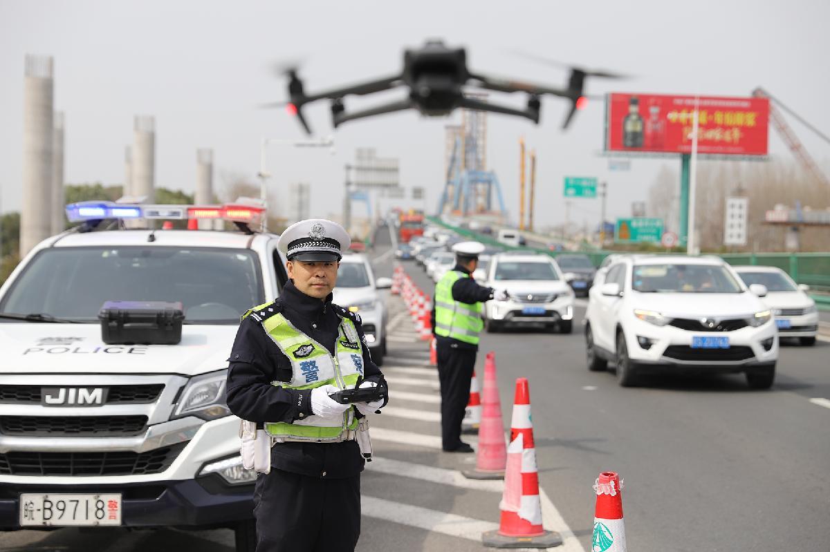 2月23日,安徽省蕪湖市公安局交管支隊高速三大隊全警上崗,采取“車巡+機巡+駐點分流”等方式,疏堵保暢、處理交通事故、服務群眾,確保群眾平安返程。
