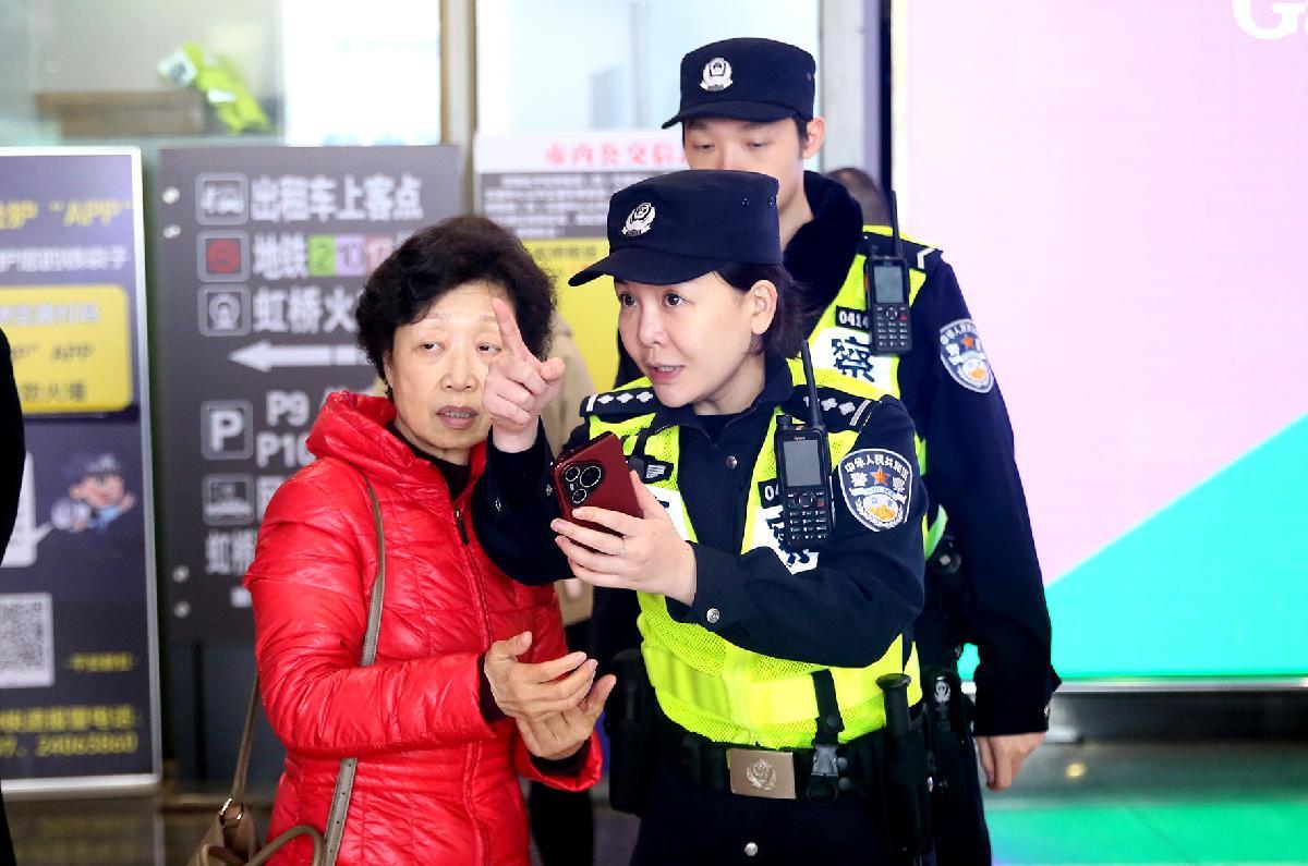 2月22日,上海市公安局閔行分局加強疊加用警,特別是在高峰時段、重點點位科學設置勤務,優(yōu)化交通疏導,全力保障上海虹橋交通樞紐秩序井然。