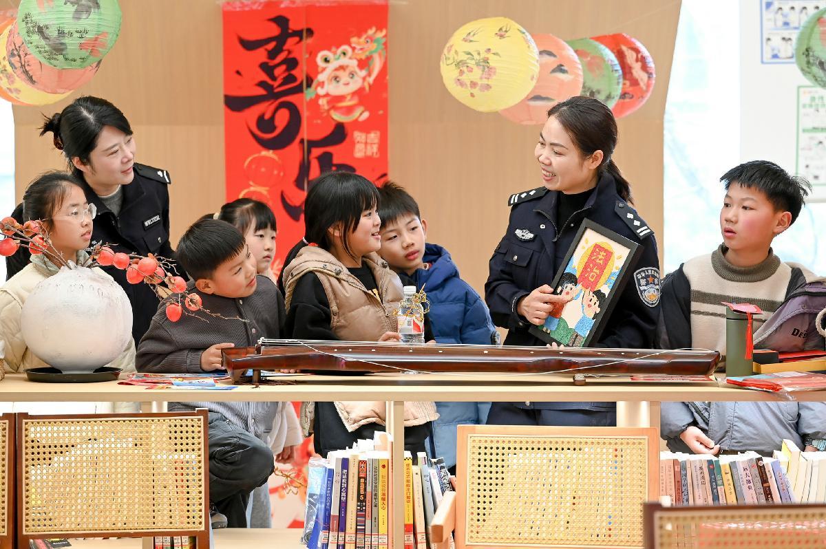 3月3日,安徽省馬鞍山市和縣公安局民警為孩子們講解元宵節(jié)的來歷,同時宣傳未成年人保護相關知識。