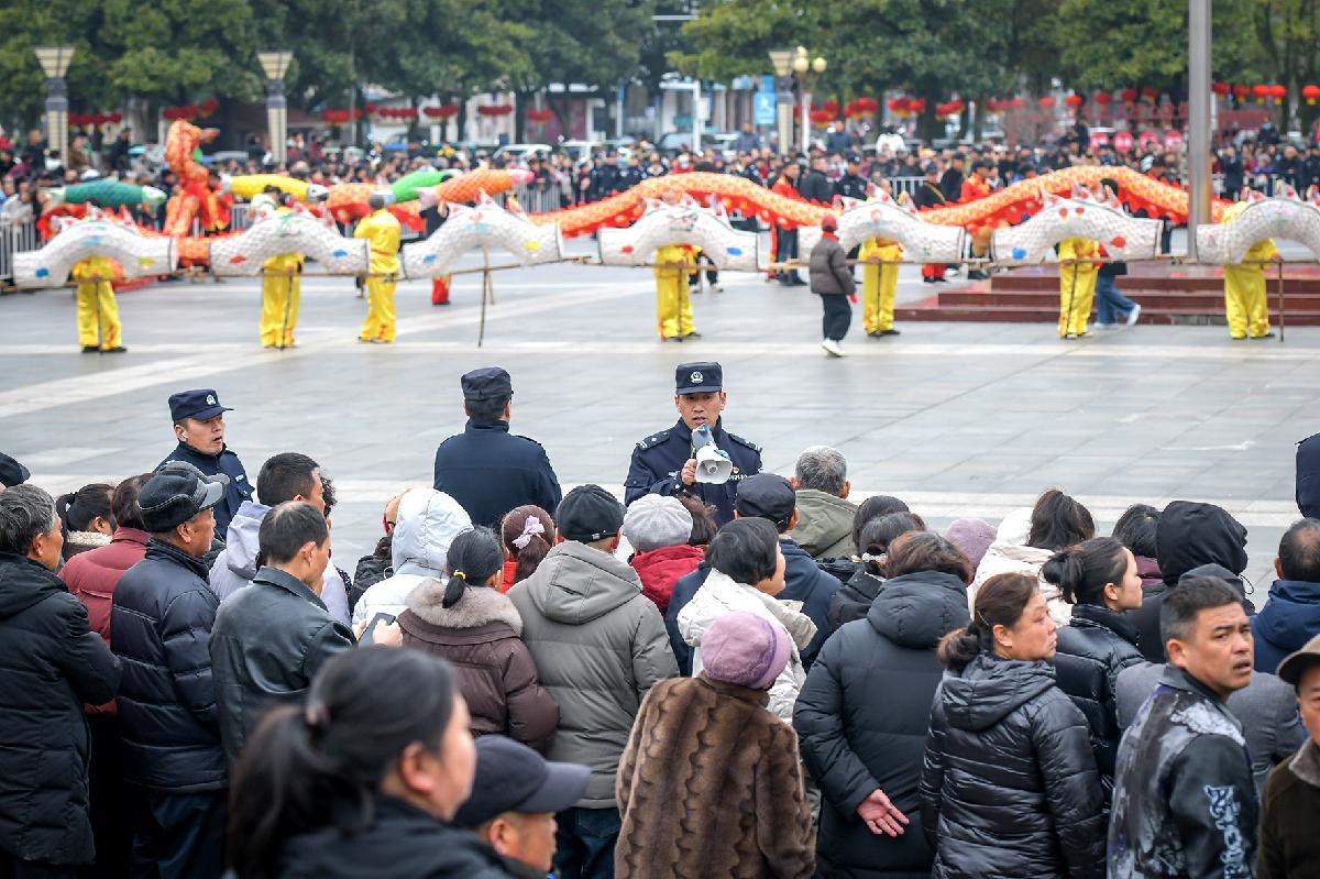 3月3日,安徽省涇縣公安局民警在2026元宵民俗巡游展演活動現場維持秩序。