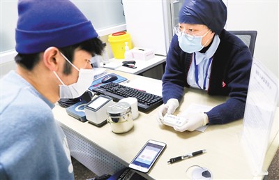 1月7日,上海市部分社區(qū)預防接種門診開始為因私出國工作、學習人員提供新冠疫苗預約緊急接種服務。自2021年1月7日0時起,上海市民可通過“健康云”APP在線24小時登記和預約。圖為上海市徐匯區(qū)康健街道社區(qū)衛(wèi)生服務中心醫(yī)務人員向接種者展示疫苗品名和有效期等信息。