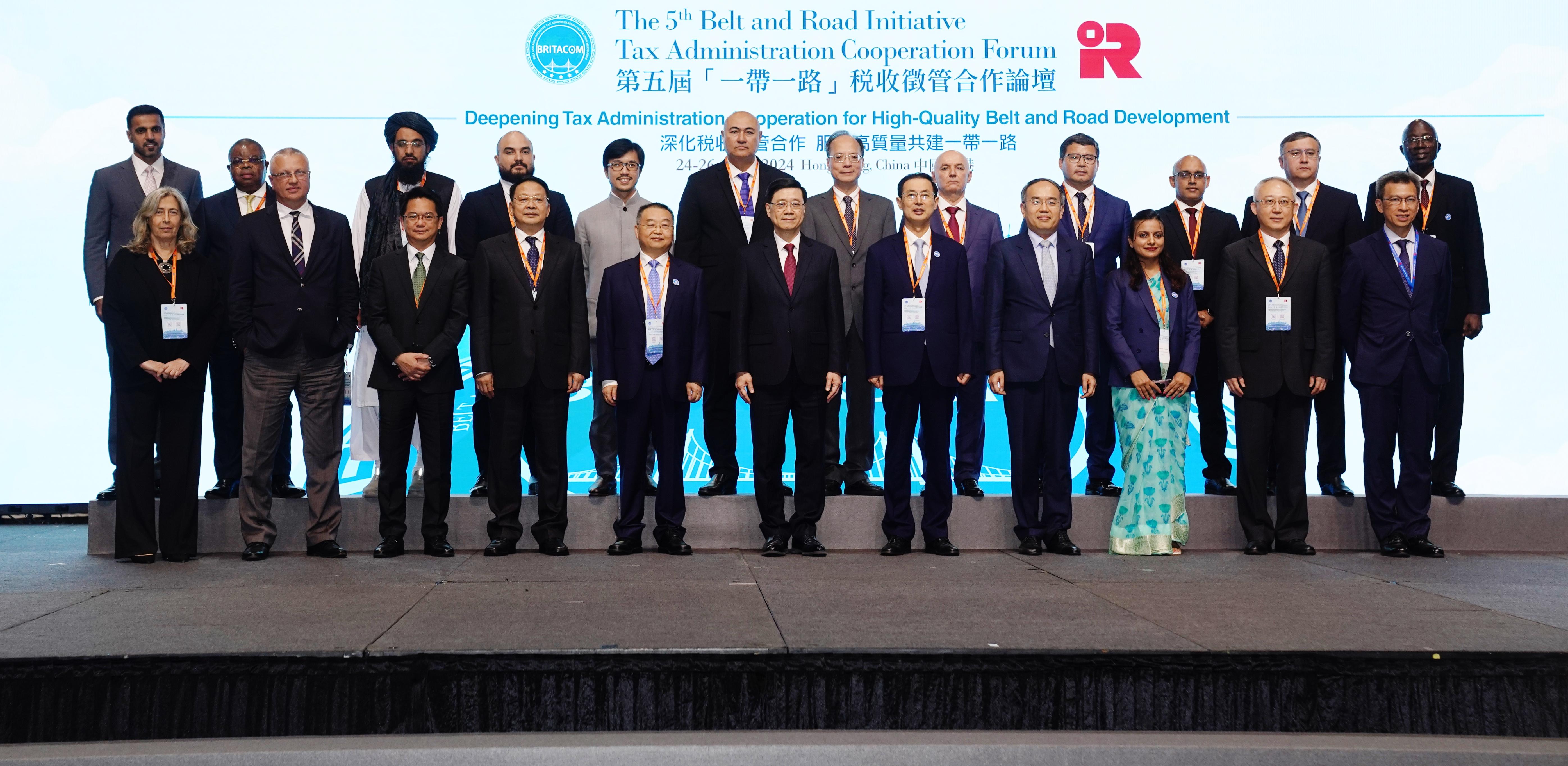 9月24日下午,第五屆“一帶一路”稅收征管合作論壇在香港亞洲國際博覽館開幕,來自近50個國家和地區(qū)的稅務(wù)部門負責(zé)人,經(jīng)濟合作與發(fā)展組織、國際貨幣基金組織等13個國際組織,40余家中外跨國企業(yè)代表共500余人出席論壇。與會代表聚焦“深化稅收征管合作 服務(wù)高質(zhì)量共建‘一帶一路’”主題,共商“一帶一路”稅收合作美好未來。香港特別行政區(qū)行政長官李家超出席開幕式并致辭。中國國家稅務(wù)總局局長胡靜林、上屆論壇主辦方格魯吉亞稅務(wù)局副局長帕塔·基拉澤在開幕式上發(fā)表主旨演講。