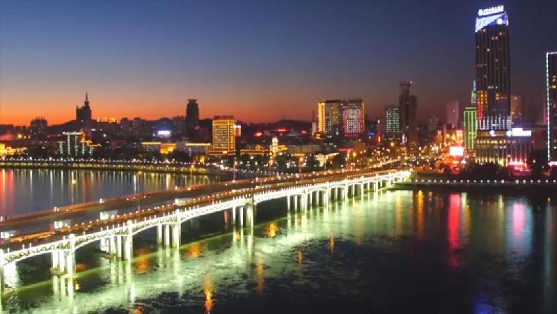 夜色下,伴隨著《讓黨旗高高飄揚》、《唱支山歌給黨聽》、《不忘初心》等10首精心編排的紅歌旋律,松花江音樂噴泉噴出道道水柱,燈光照耀下,五彩繽紛,翩翩起舞,交織出一幅幅壯美的畫卷。北山公園、吉林大橋、臨江門大橋等重點場所點位一片璀璨,營造了慶祝建黨百年的濃厚氛圍。