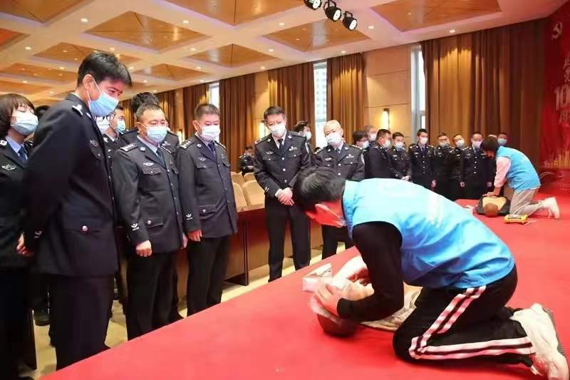 為進(jìn)一步加強(qiáng)民警身心健康保護(hù),為春運(yùn)安保、冬奧安保打下基礎(chǔ),近日,太原鐵路公安局大同公安處邀請山西省紅十字賑災(zāi)救援搜救隊(duì)為全處干部民警開展應(yīng)急救護(hù)技能培訓(xùn)講座,進(jìn)一步提高民警自救意識和急救水平。圖為培訓(xùn)現(xiàn)場。