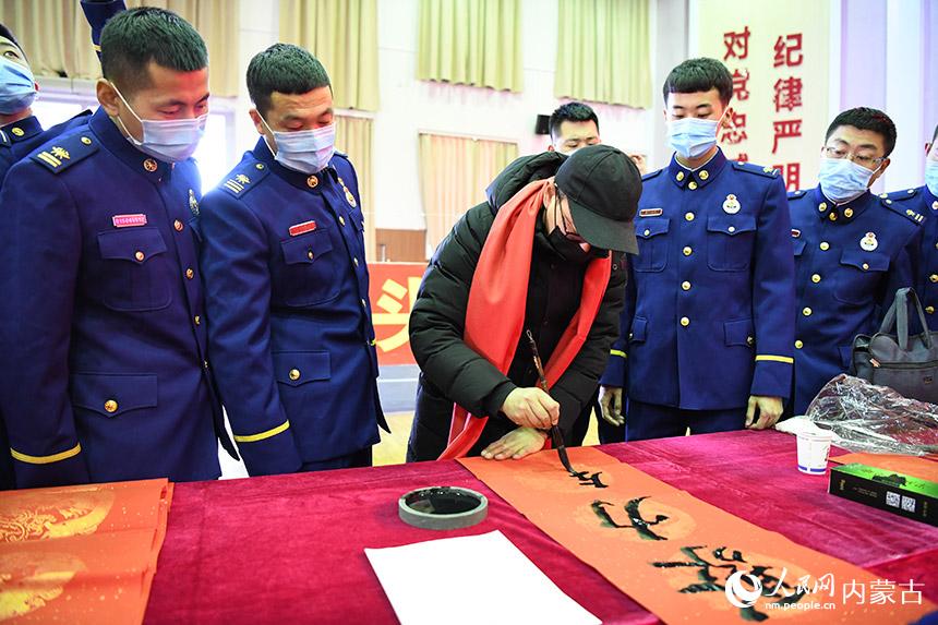 新春的腳步越來(lái)越近,內(nèi)蒙古各地洋溢著喜慶的氛圍。近日,人民網(wǎng)內(nèi)蒙古頻道攜手內(nèi)蒙古美術(shù)館為內(nèi)蒙古森林消防總隊(duì)特種救援大隊(duì)的戰(zhàn)士們寫(xiě)春聯(lián),為“藍(lán)朋友”們送上新春的祝福。
