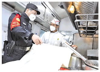 圖為張朝華對列車餐車的消防設(shè)備進(jìn)行檢查。 通訊員 茍國力 攝