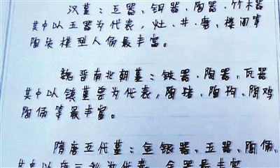 據(jù)公訴人介紹,警方查到一本盜墓筆記后,劉飛對此供認(rèn)不諱。他表示,自己是從一些專家教授所著的古墓葬書籍中和文章中摘抄出精華,記在筆記本上以供隨時復(fù)習(xí)。之所以要記下來,他認(rèn)為這些關(guān)于古墓的知識,“專家說得很對”。