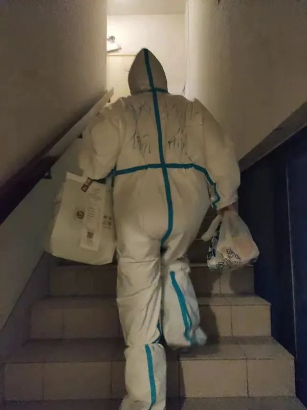 同時,在核酸檢測開始后,物業(yè)工作人員也會身穿防護服,按照一定的樓層為一個區(qū)間,從頂層33樓逐戶敲門通知,為避免擠占公共資源,影響核酸檢測效率,他們也只得一層一層爬樓梯。