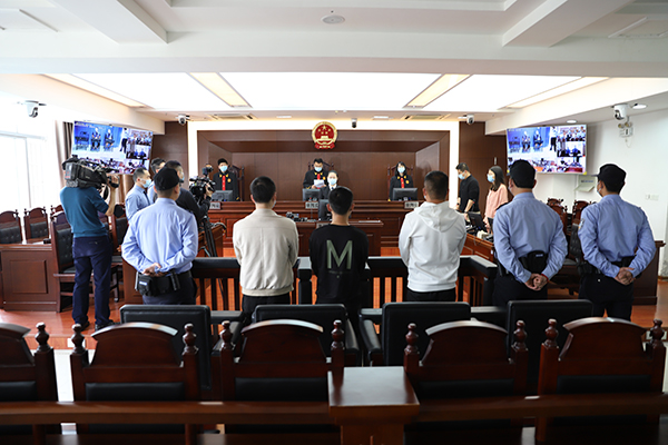 2022年4月22日上午,福建省莆田市涵江區(qū)人民法院依法公開開庭審理并當(dāng)庭宣判被告人黃某鋒犯組織他人偷越國(邊)境罪、偷越國(邊)境罪,以及被告人黃某、林某凡、陳某新、陳某犯偷越國(邊)境罪一案。區(qū)法院黨組書記、院長林青山擔(dān)任審判長主持庭審,區(qū)檢察院黨組書記、檢察長姚舟以公訴人身份出庭支持公訴。該案是莆田市首次法檢兩長同庭打擊涉緬北偷越國(邊)境犯罪。