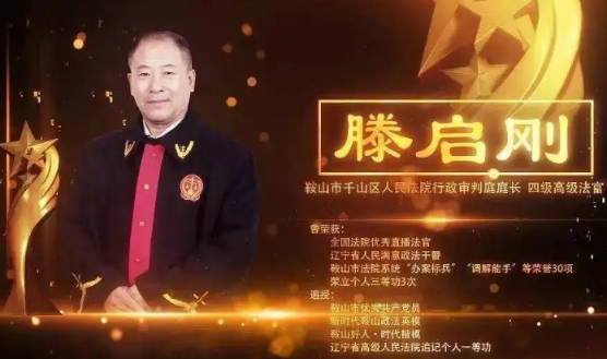 【人物簡介】 滕啟剛,中共黨員,生前為遼寧省鞍山市千山區(qū)人民法院行政審判庭庭長、四級高級法官。在法院工作31年間,先后從事刑事審判、民事審判、信息化管理、行政審判等工作。2021年6月4日,在家中因突發(fā)腦出血搶救無效去世,終年57歲,同年11月被遼寧省委宣傳部追授“遼寧時代楷?!睒s譽(yù)稱號。