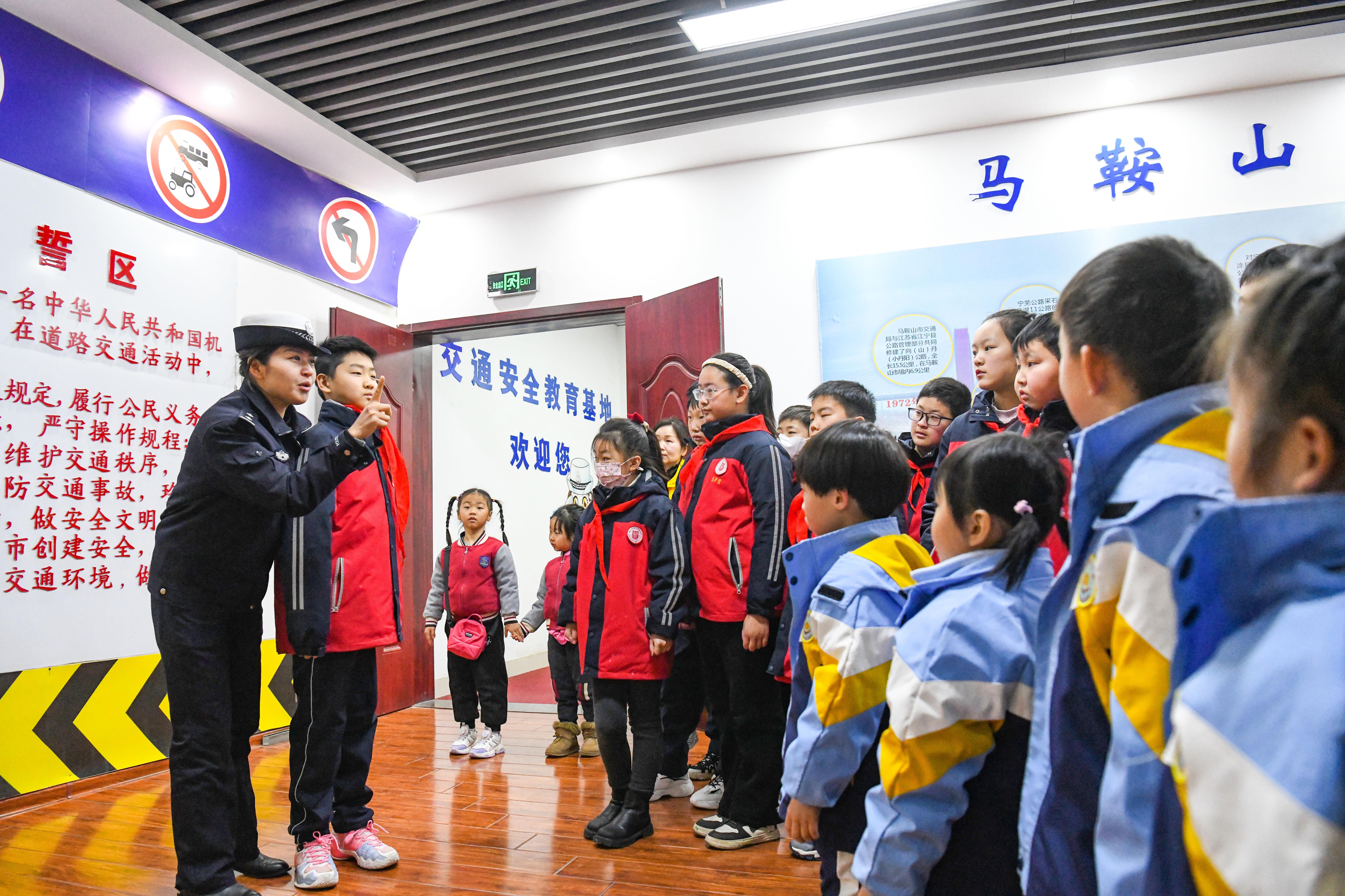 2月15日,安徽省含山縣公安局交管大隊邀請該縣中小學(xué)生來到馬鞍山市交通安全教育基地,為學(xué)生們帶來一堂“沉浸式”交通安全課?,F(xiàn)場,民警利用“模擬交通”智慧課堂,與同學(xué)們積極互動,通過模擬駕駛機動車、摩托車,對走錯道、未按交警手勢通行、搶燈等違法行為及時糾正,引導(dǎo)孩子們自覺遵守交通法規(guī),牢固樹立安全意識。圖為民警為學(xué)生講解交通安全知識。 本報通訊員 馮善軍 攝
