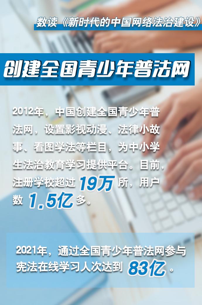 互聯(lián)網(wǎng)是人類文明發(fā)展的重要成果,法治是互聯(lián)網(wǎng)治理的基本方式。長(zhǎng)期以來,我國(guó)堅(jiān)持依法治網(wǎng),持續(xù)推進(jìn)網(wǎng)絡(luò)空間法治化,推動(dòng)互聯(lián)網(wǎng)在法治軌道上健康運(yùn)行。3月16日,國(guó)務(wù)院新聞辦公室發(fā)布《新時(shí)代的中國(guó)網(wǎng)絡(luò)法治建設(shè)》白皮書,白皮書公布了很多重要數(shù)據(jù),讓我們通過這些數(shù)據(jù),感受新時(shí)代以來我國(guó)在網(wǎng)絡(luò)立法、執(zhí)法、司法、普法、法治教育等領(lǐng)域取得的歷史性成就。