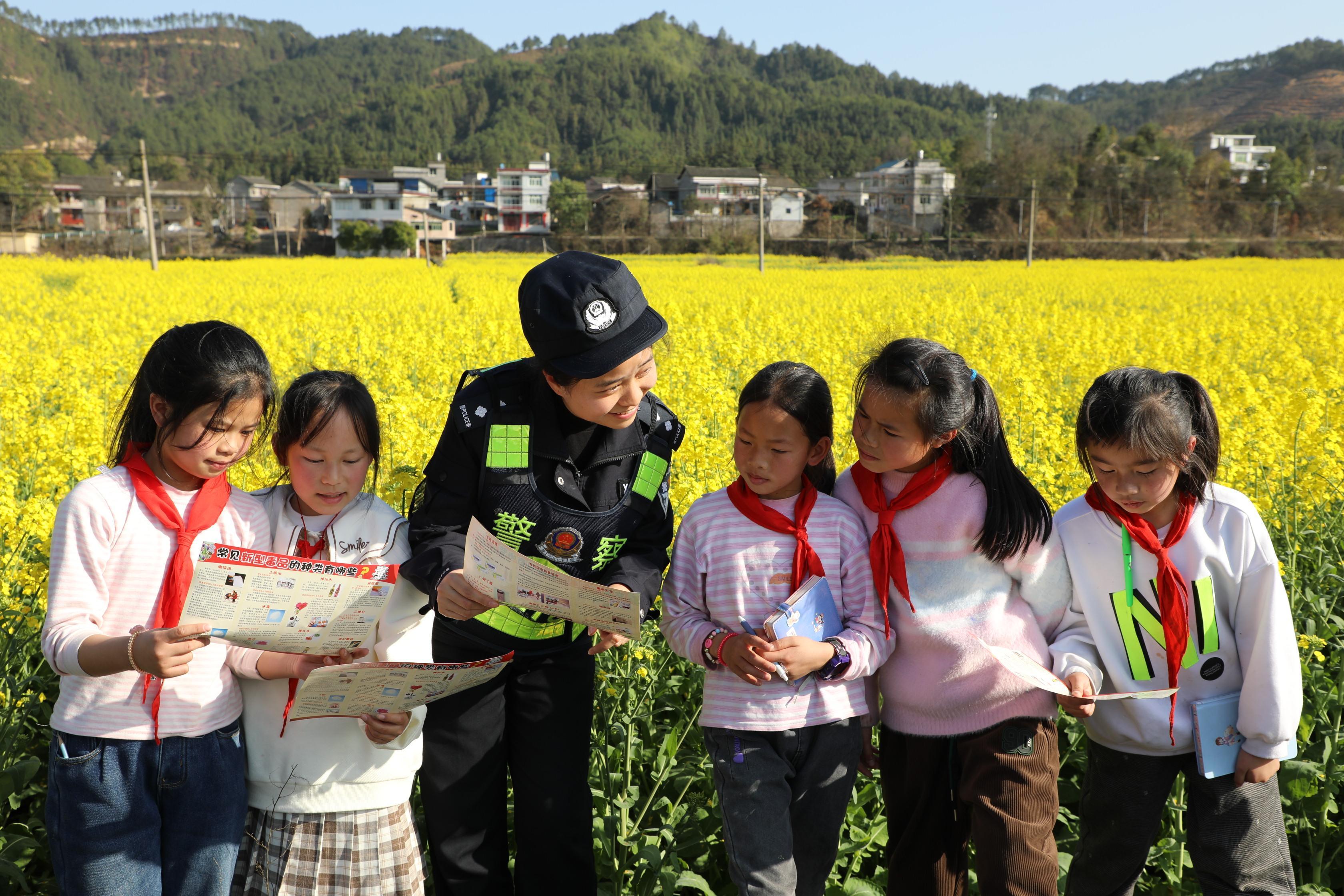 3月10日,貴州省三穗縣公安局長吉派出所組織民警深入轄區(qū)開展平安建設宣傳活動,圍繞預防電信網絡詐騙、禁毒、森林防火等內容向未成年人進行宣傳。圖為民警向轄區(qū)小學生講解禁毒知識。 通訊員 吳芳秋 攝