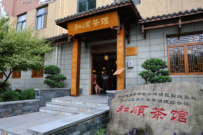 茶館在川渝地區(qū)是最常見的休閑去處,在重慶市沙坪壩區(qū)回龍壩鎮(zhèn)聚龍城社區(qū),一間非民辦“和順茶館”成為當(dāng)?shù)匕傩盏男聦櫍撼撕炔枇奶?,茶館還融合了各職能部門下沉社區(qū)的十幾個辦公室功能。政策宣講、糾紛調(diào)解、法律咨詢……一杯清茶間,社區(qū)里那些難辦、急辦的事總能得到妥善解決。