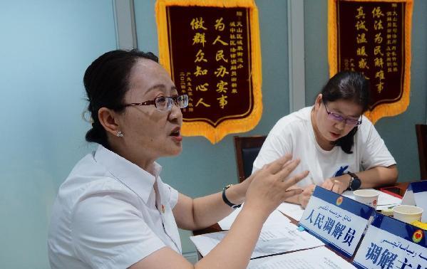 光明網(wǎng)烏魯木齊訊 (見習記者 刁慈)“自2006年起,參與調解各類矛盾糾紛1750余起,接待來訪群眾10000余人次,調解成功率超過98%……”這些數(shù)字背后,是新疆烏魯木齊市天山區(qū)堿泉街道堿泉中社區(qū)人民調解員田新泉十八年來的調解成果。