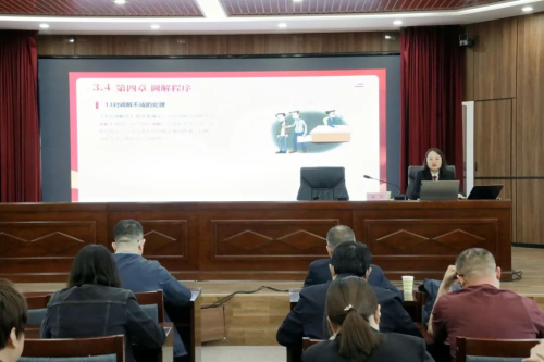 4月24日,內(nèi)蒙古自治區(qū)烏海市烏達區(qū)人民法院組織開展了2025年度特邀人民調(diào)解員培訓班。立案庭庭長武笑為20余名人大代表、政協(xié)委員特邀調(diào)解員帶來了一場干貨滿滿的法律知識課程。