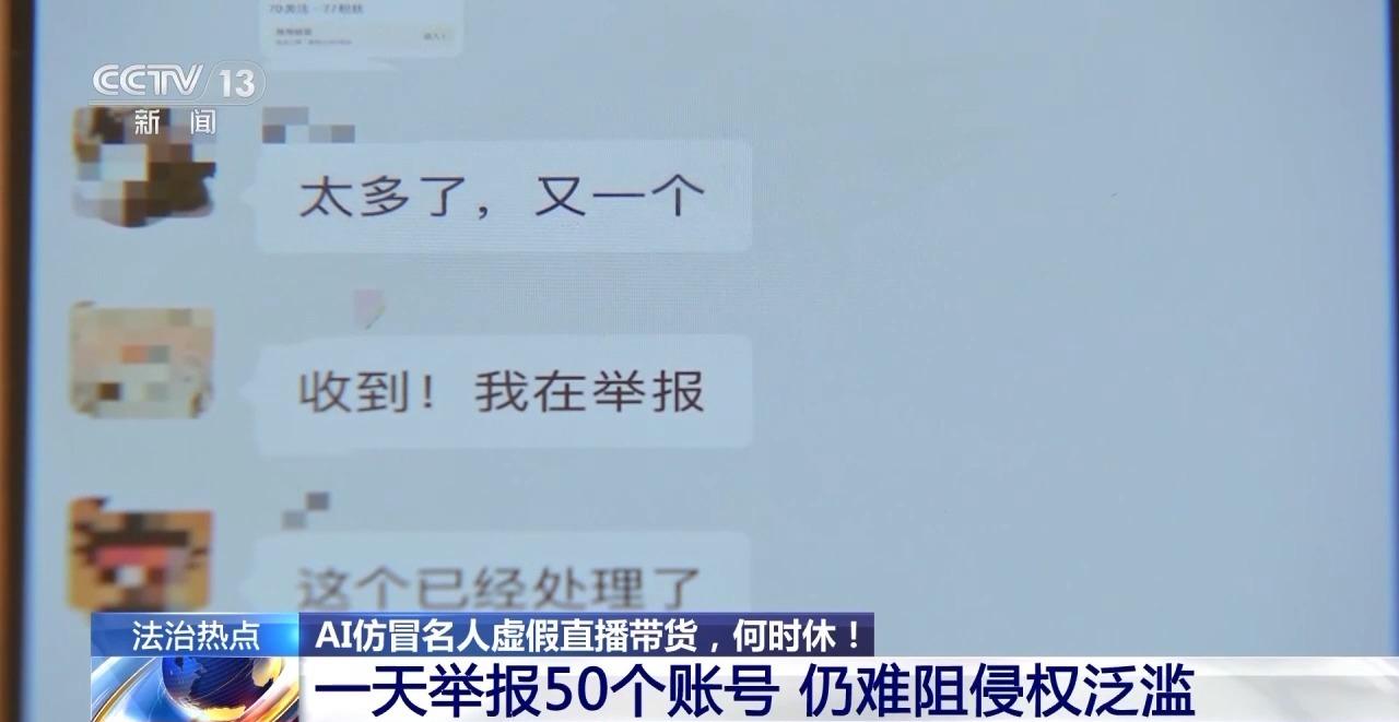 溫崢嶸團(tuán)隊工作人員發(fā)現(xiàn)虛假視頻在網(wǎng)絡(luò)傳播后,便持續(xù)進(jìn)行舉報,一天內(nèi)曾集中舉報50個假冒賬號,有的造假賬號被平臺下架處理,有的則剛下架就換個形式重新出現(xiàn),讓人防不勝防。對于這樣的情況,工作人員告訴記者,部分商家只需截取一段影像,用簡易工具就能生成虛假內(nèi)容,而他們?nèi)∽C卻要花費很大的精力。