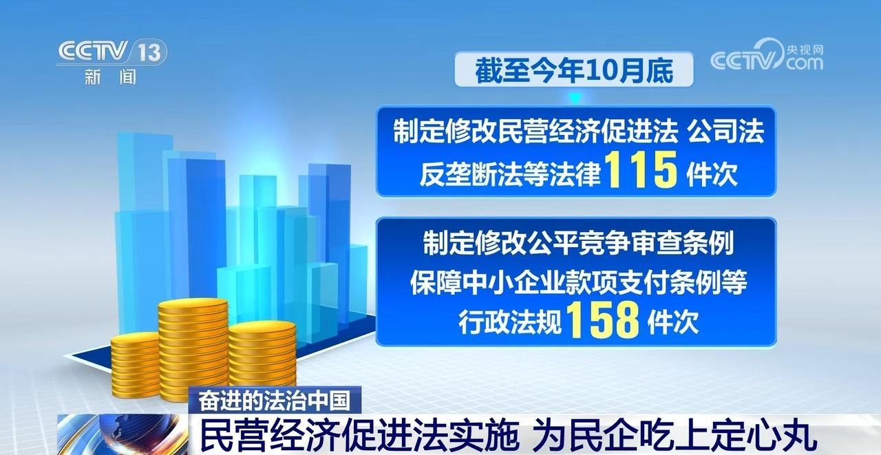 為推進(jìn)法治化營商環(huán)境建設(shè),五年來,我國深入推進(jìn)科學(xué)立法、民主立法、依法立法,切實(shí)以高質(zhì)量立法保障經(jīng)濟(jì)社會(huì)高質(zhì)量發(fā)展,截至今年10月底,制定修改民營經(jīng)濟(jì)促進(jìn)法、公司法、反壟斷法等法律115件次,制定修改公平競爭審查條例、保障中小企業(yè)款項(xiàng)支付條例等行政法規(guī)158件次。同時(shí),堅(jiān)持立改廢釋并舉,對(duì)全部現(xiàn)行600多部行政法規(guī)開展集中清理,統(tǒng)籌開展涉企不平等政策和法律法規(guī)清理,為建設(shè)統(tǒng)一大市場、推動(dòng)高質(zhì)量發(fā)展提供了重要保障和支撐。