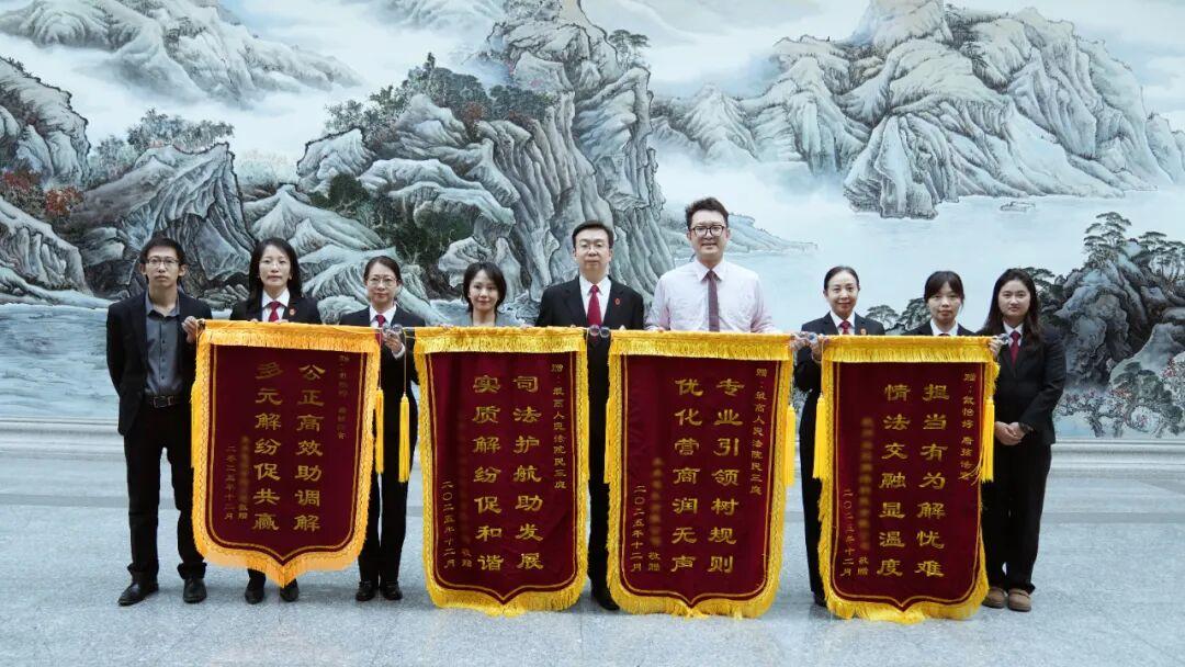 2025年12月24日,最高人民法院第六法庭里,褪去了平日里開庭的嚴肅,露出鮮有的平和氛圍。楊女士和祁先生各自代表平臺公司和電視公司,分別向最高人民法院民三庭、承辦法官團隊贈送錦旗。民三庭庭長李劍代表最高法民三庭接受了錦旗,戴怡婷法官團隊接受了贈旗。