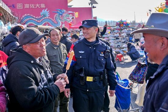 圖為南佐派出所民警馬星與趕集群眾互動。
